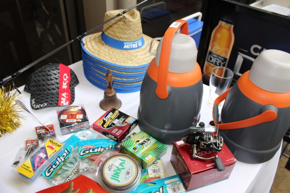 Finally the Weigh In part of proceedings is completed and Raffle prizes, great raffle prizes, are called out for those who have bought tickets. Although more than one tries to make off with the shield, after relenting they choose from among things for fishing with from hats, to thermos to fishing gear itself.