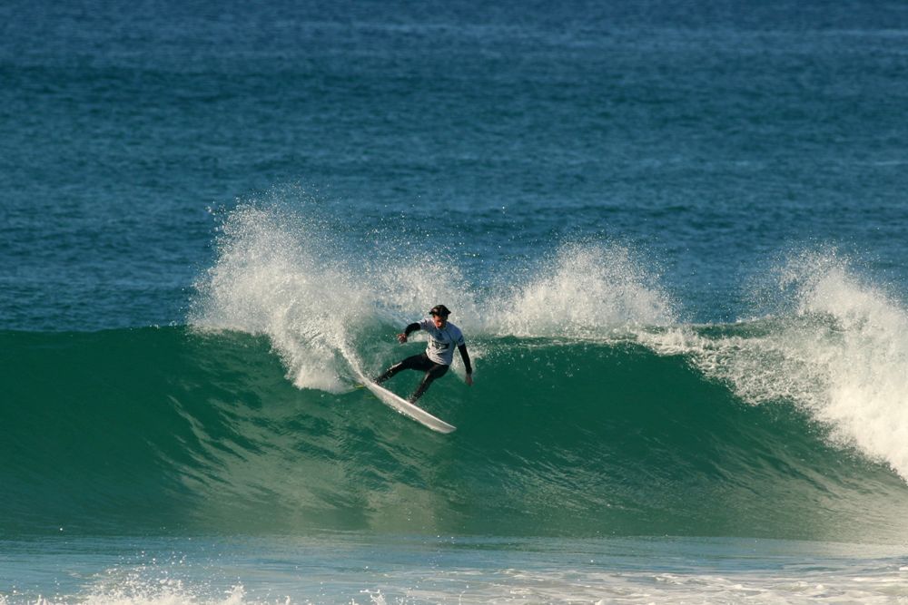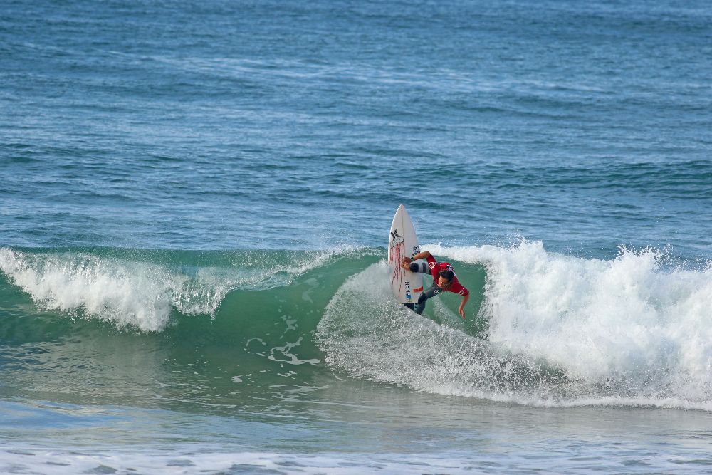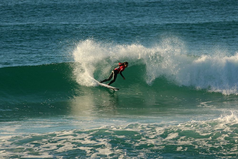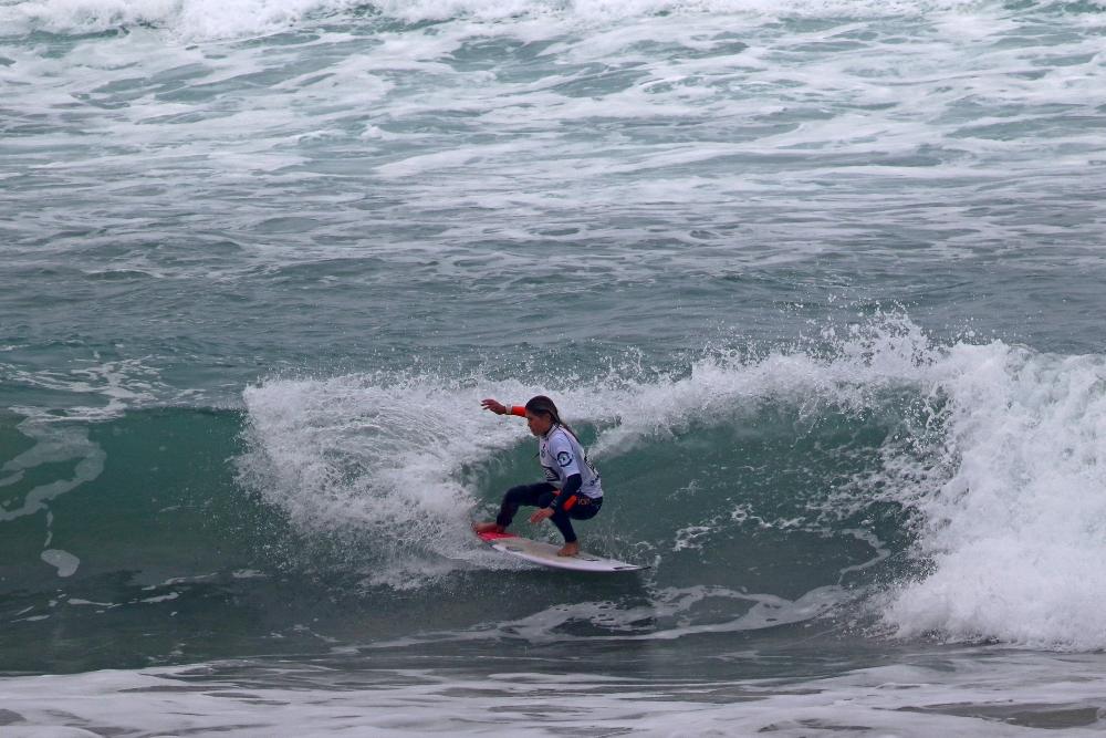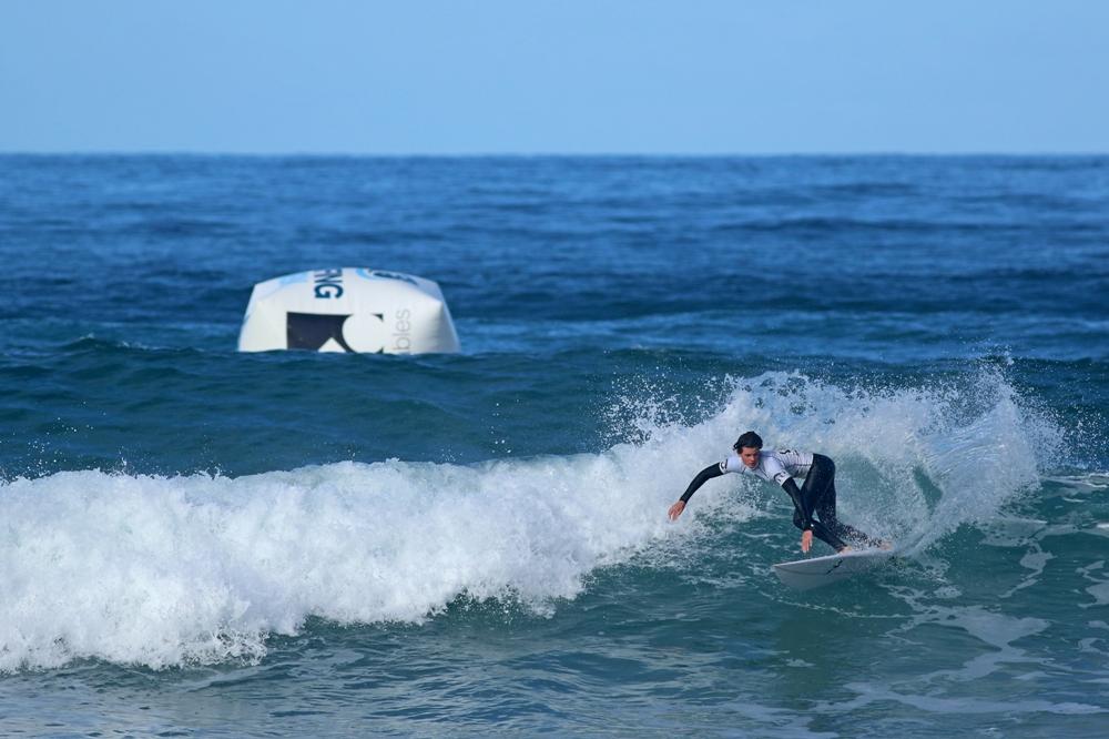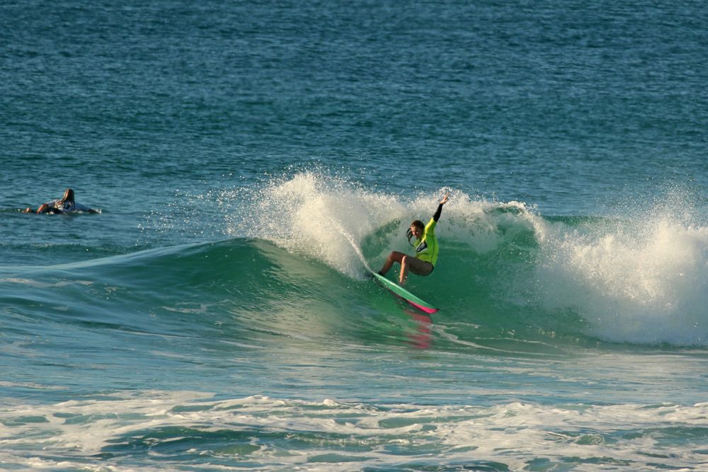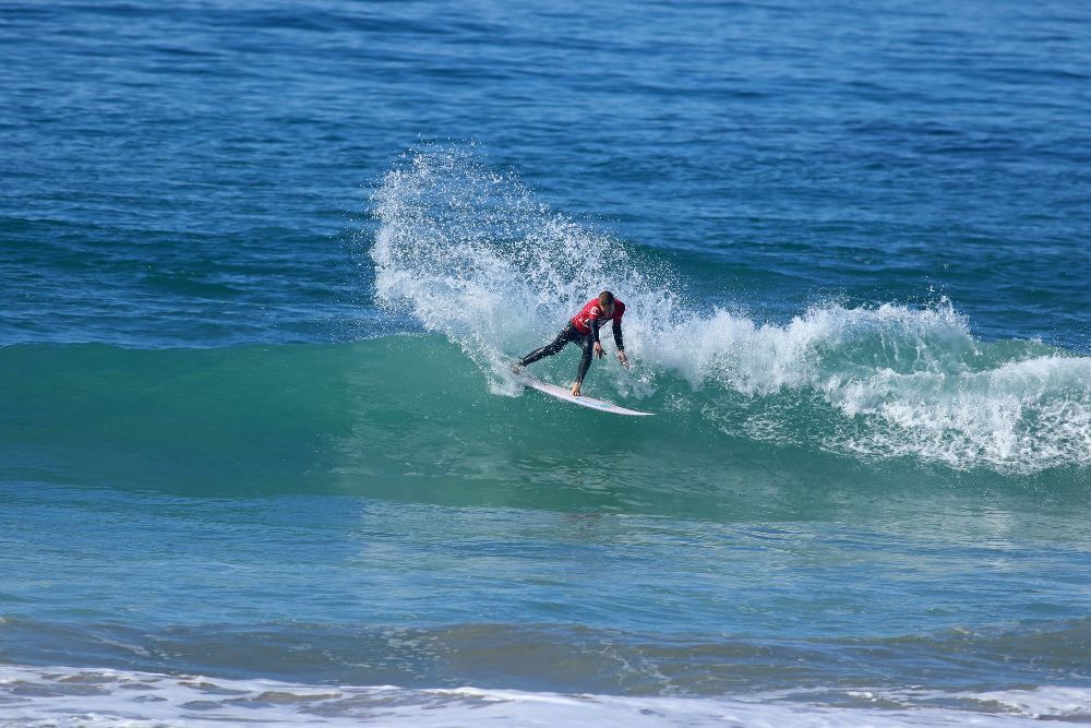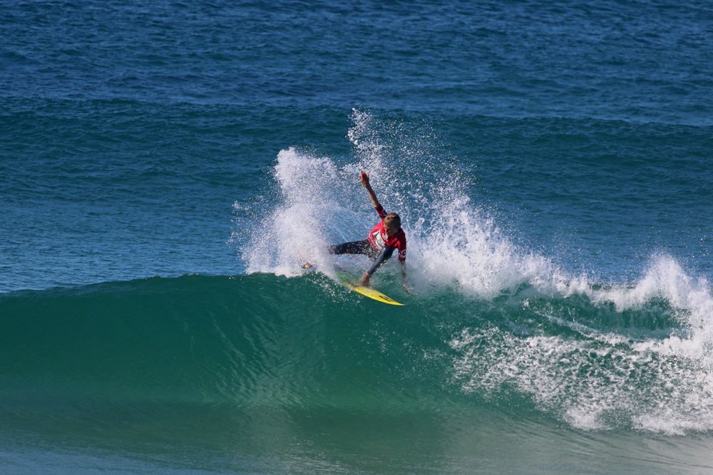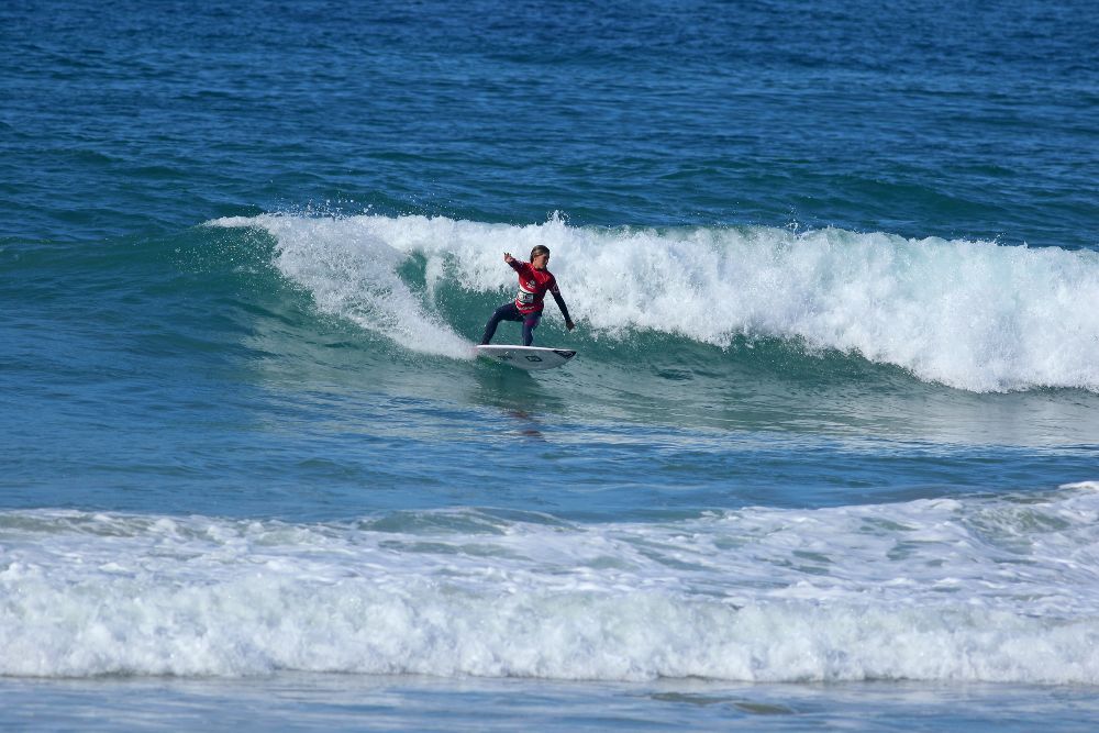 Central Coast native Noah Munro (Noraville) put on a dominant display of power-surfing in the Under-18 Boys requalification heats performing an eclectic array of giant frontside turns. Munro posted the highest heat total on the round notching up a 15.16 score.