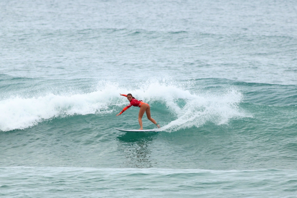 Kirra-Belle Olsson (Avoca) dominated the first round of the Under-16 Girls, dropping a massive 17.7 heat total (out of a possible 20 points). The aforementioned score went in as the highest two-wave combined score of the day and allowed Olsson to skip the requalification rounds. Ironically, Kirra-Belle posted a perfect ten-point at the 2015 Ocean and Earth NSW Junior Titles at Bonny Hills exactly one year ago.