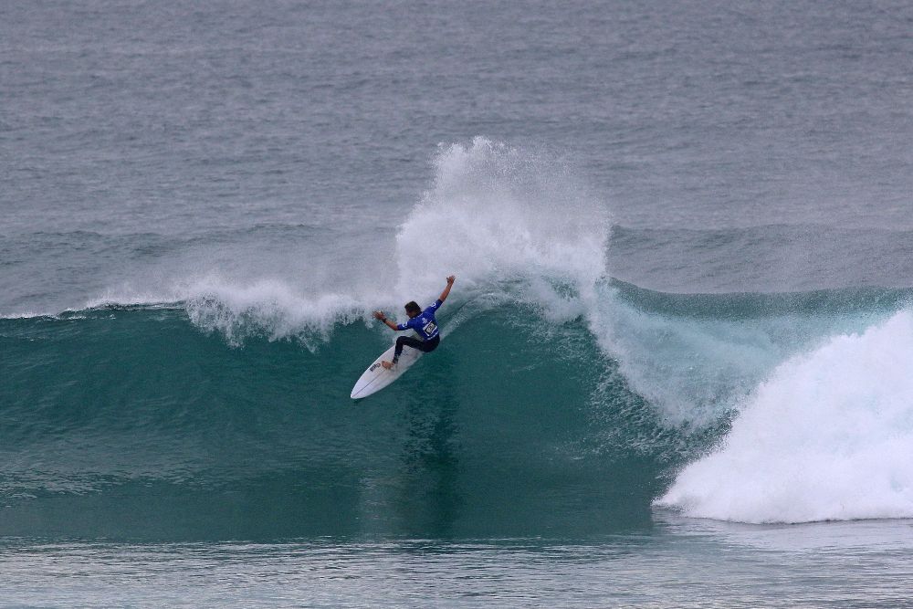 Kyuss King (Byron Bay) also made his mark on the Under-18 Boys division posting a 12.50 heat total. The natural-footer, who is known for his progressive approach, won his opening round heat today ahead of Nathan Rohr (Cronulla) who put up a valiant effort but had to settle for second place.