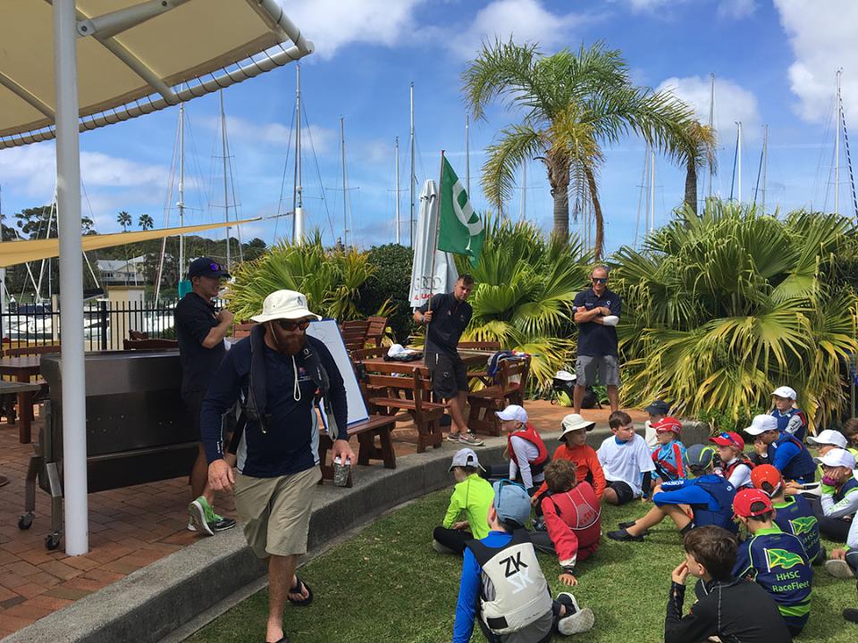 Pre coaching for Green Fleet this morning for the 2018 Pacific Boating NSW & Open Optimist Championship .