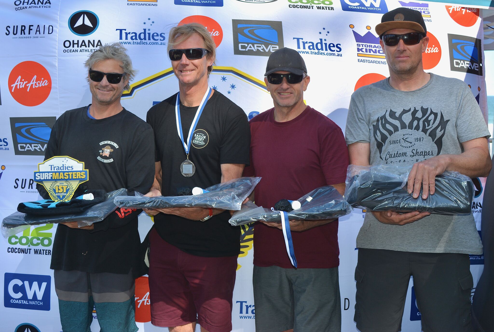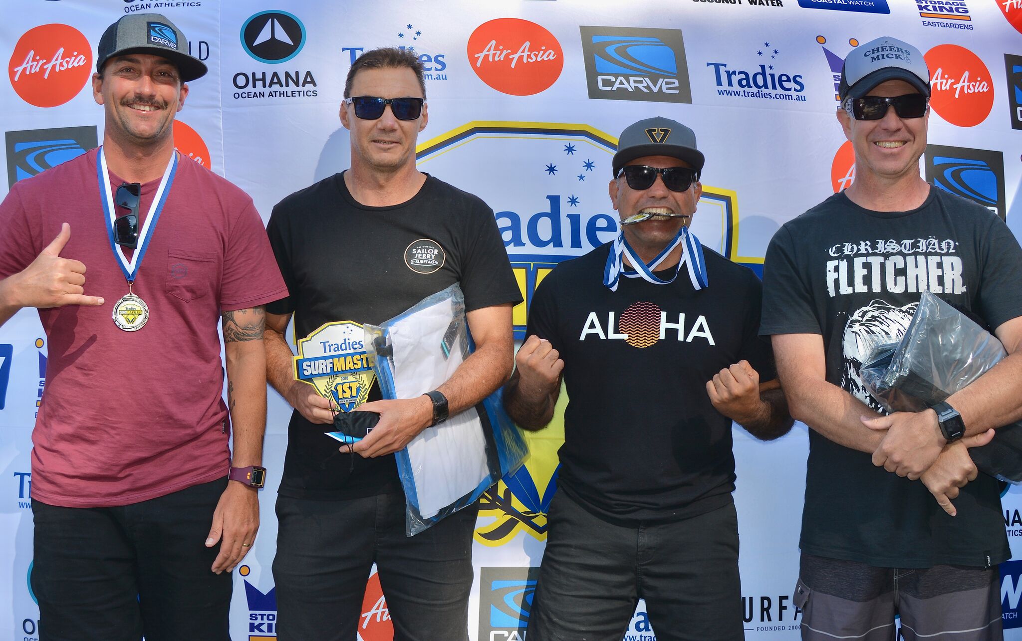 The 2018 Tradies Surfmasters is also proudly supported by Tradies Caringbah, Sutherland Shire Council, Toyota, Surfing NSW, H2Coco, Air Asia, Australian Skin Cancer Clinics, Mothernest, Vissla, Havaiana's.
