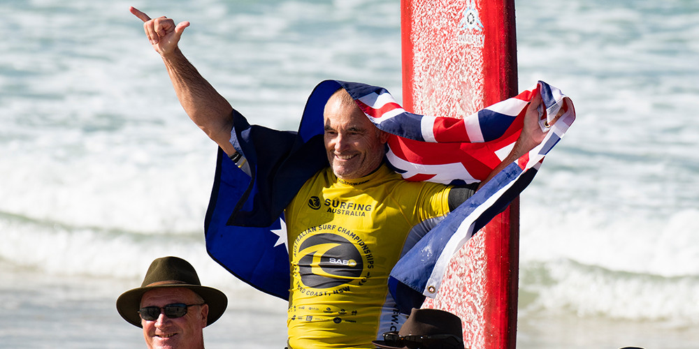 Jason Livingston (Curl Curl, NSW) etched his name into the 2019 SAE Group Australian Surf Championships history books, being the only surfer to claim two divisions. Livingston put on a dominant display of surfing across the Over-45 and Over-50 Men’s finals to claim the top spot in both divisions with massive heat totals. Over the course of the event, Livingston remained undefeated, winning every heat he surfed.