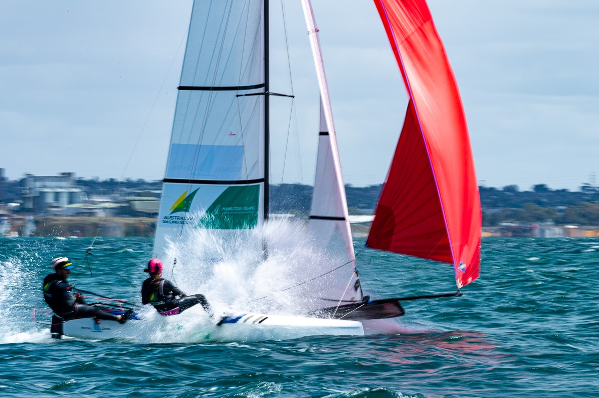 Nacra Coach, the well credentialed Darren Bundock, said, "All of our athletes have all put in the time with their training in Geelong. and are looking forward to competing at a home World Championships."