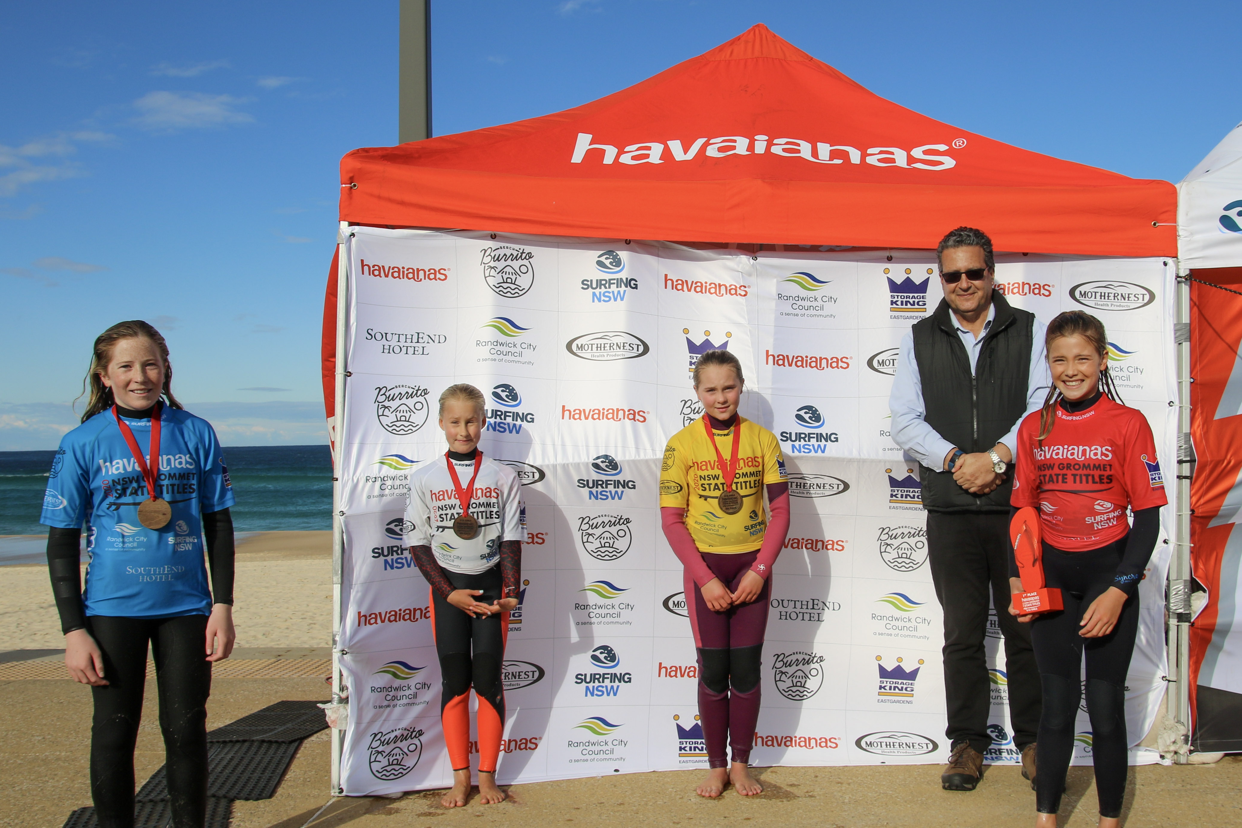 The 2020 Havaianas NSW Grommet State Titles saw four new NSW state champions crowned today following a day of exciting action in small-but-punchy conditions at Maroubra Beach.