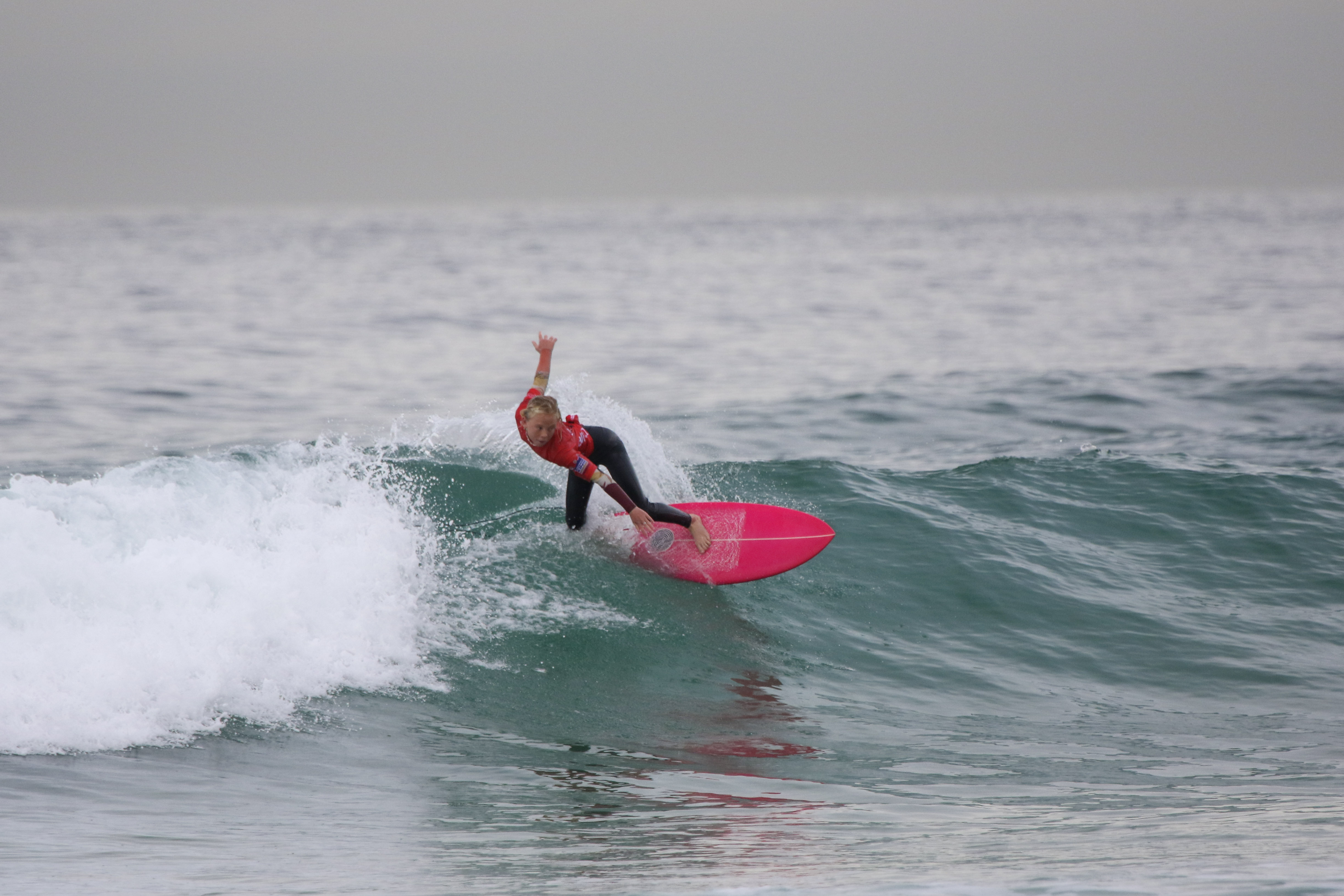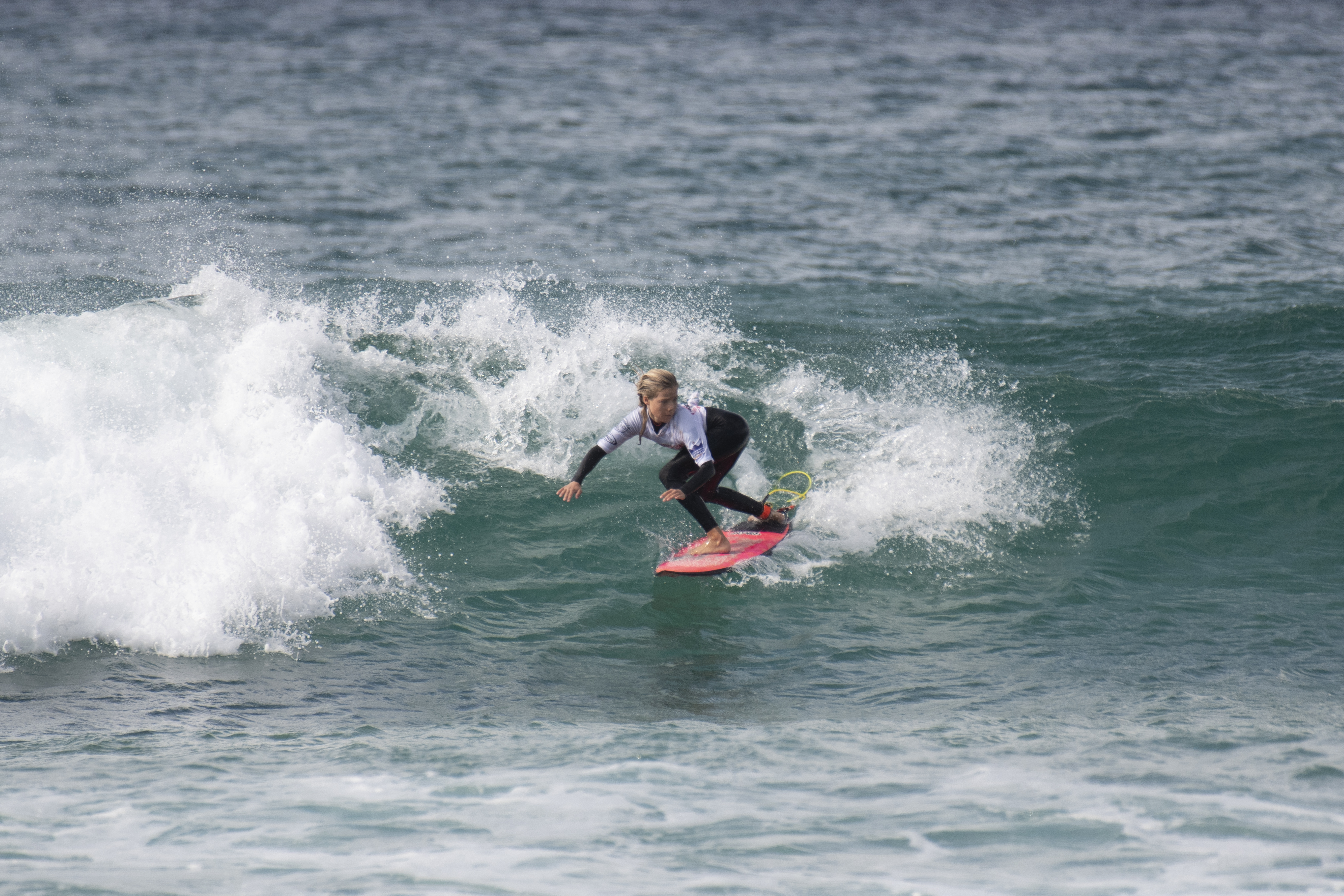 Ruby Trew (Seaforth) made her presence felt in her opening Under-14 Girls heat, posting a gigantic 17.17 two-wave heat total. The northern beaches goofy-footer hammered a variety of turns that impressed the judges and spectators and sealed her position straight into the third round.