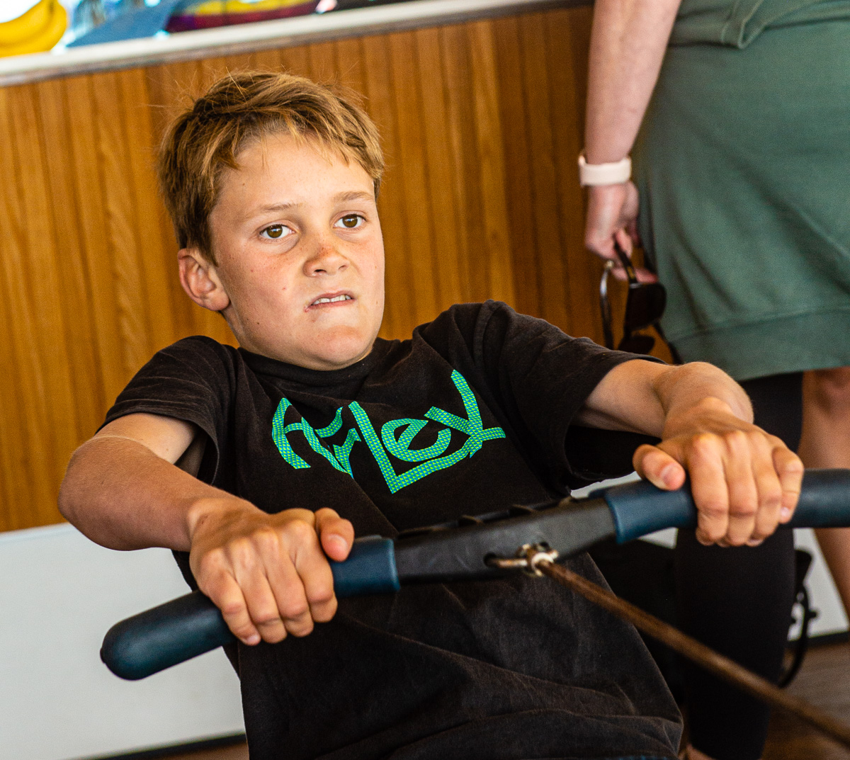 Regan Dale at Avalon surf club, finishes his row. Photo: Michael Mannington, Community Photography