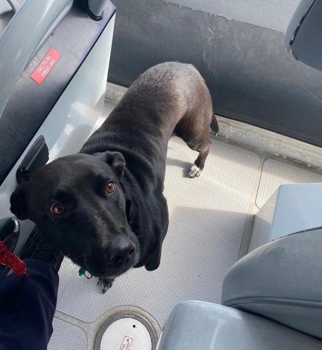 The female was caught up in a crab pot rope which was wrapped around her neck and strangling her. Samuel removed the ropes and fishing line from both parties. In the meantime, Andrew was able to retrieve the canine from the water. The female was unconscious when pulled to safety onboard their vessel and CPR was successfully administered by Andrew.
