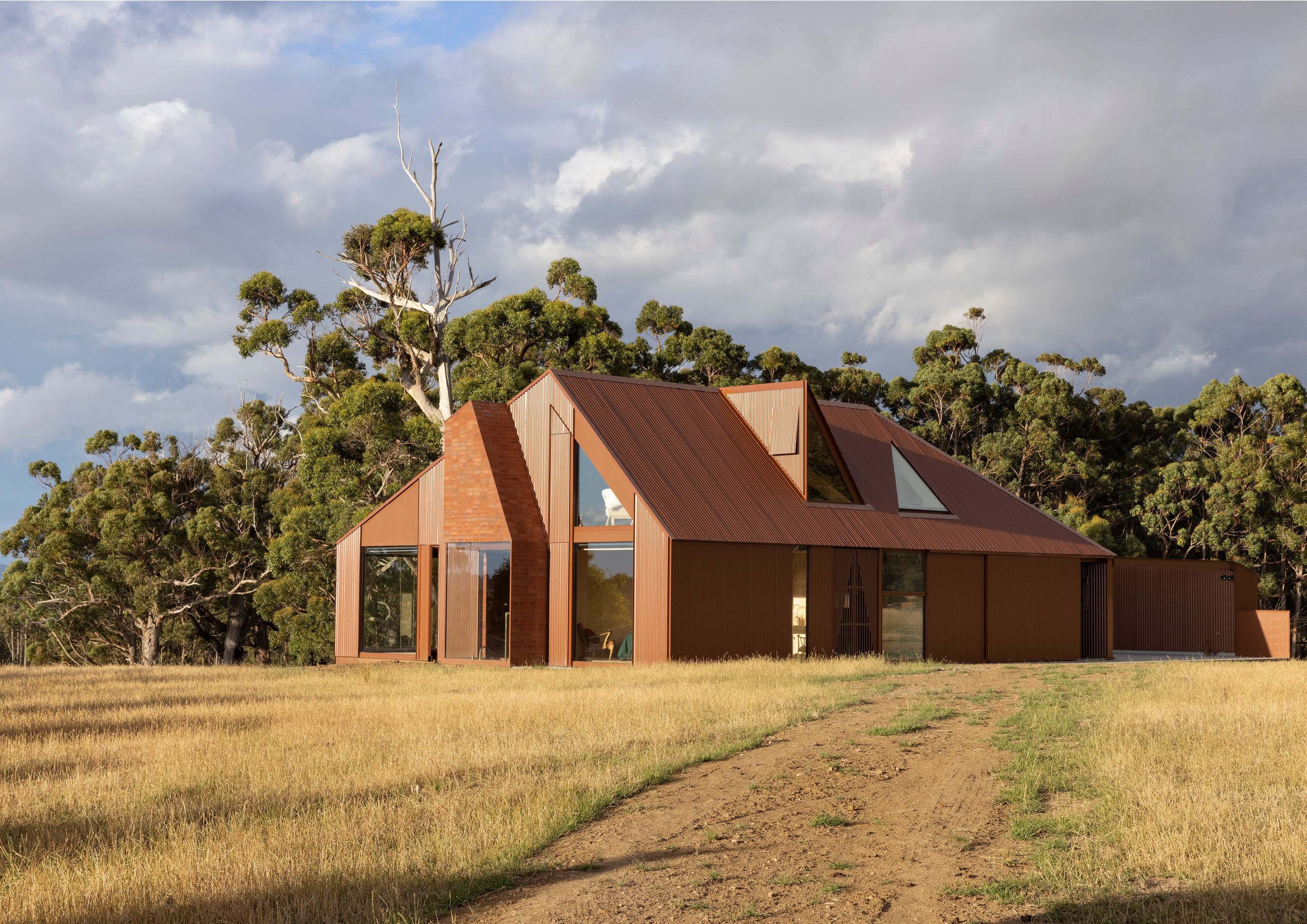 ● Coopworth - Nestled in the rural surrounds of Bruny Island, Tasmania, Coopworth is a contemporary interpretation of a country farmhouse. Through playful forms and an inventive approach to materials, Coopworth tactfully converses with the ever-changing landscape of Coopworth sheep, wide-ranging views, and weathering red lead shacks dotted over the island.
