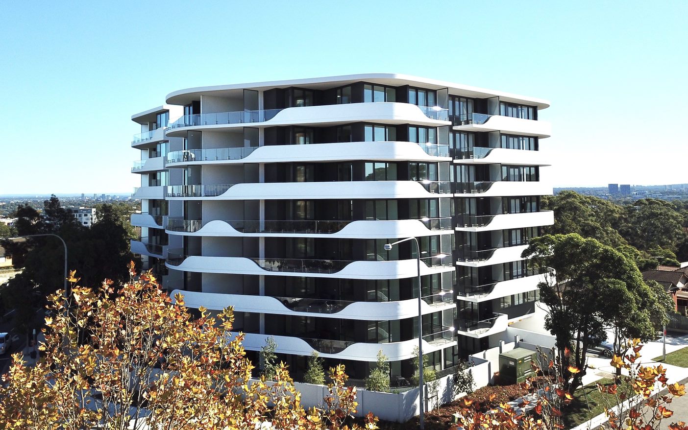 Located on a former works depot site for the Lane Cove Tunnel, Infinity Cove is a free standing, building sitting on high ground that responds to the complex conditions around the site by creating an organic-shaped built form that gently curves around the busy intersection. It demonstrates that sustainable design can be maintained on an environmentally challenged site.