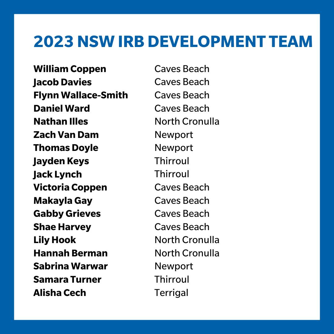 Following the end of racing on Sunday, the NSW IRB Interstate Team and NSW IRB Development Team was announced ahead of the Australian IRB Championships at Kingscliff on the NSW North Coast from 20-23 July. This year the NSW IRB Team includes Newport SLSC Members: