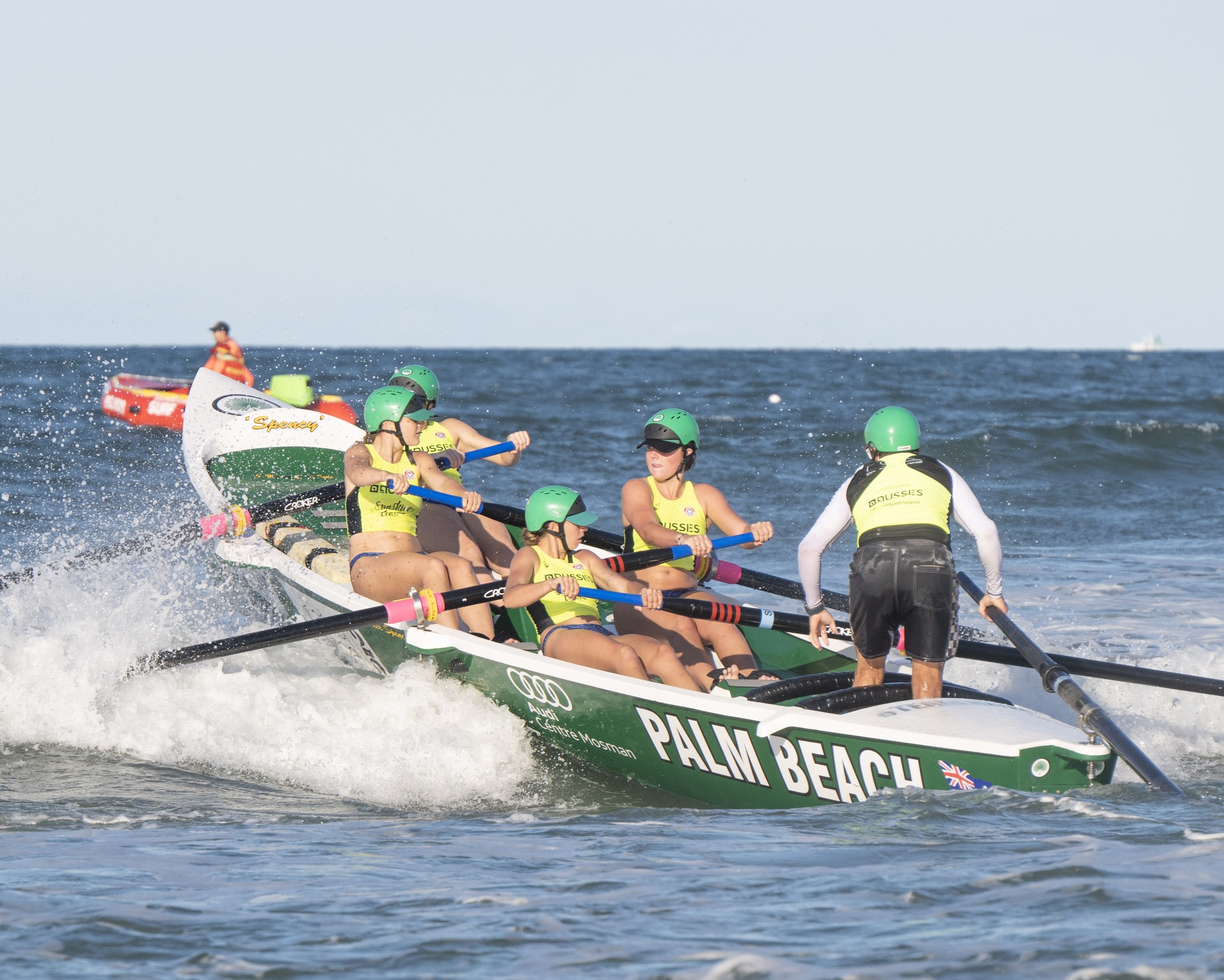 Palm Beach SLSC's Puddles crew of Chloe Driver, Chloe Brunker, Zoe Elliot and Madeleine Julliard with Boat Captain Peter Spence as sweep won gold, completing a whole Season of back to back wins. Surely the success story of the Surf Boat Season for local crews.