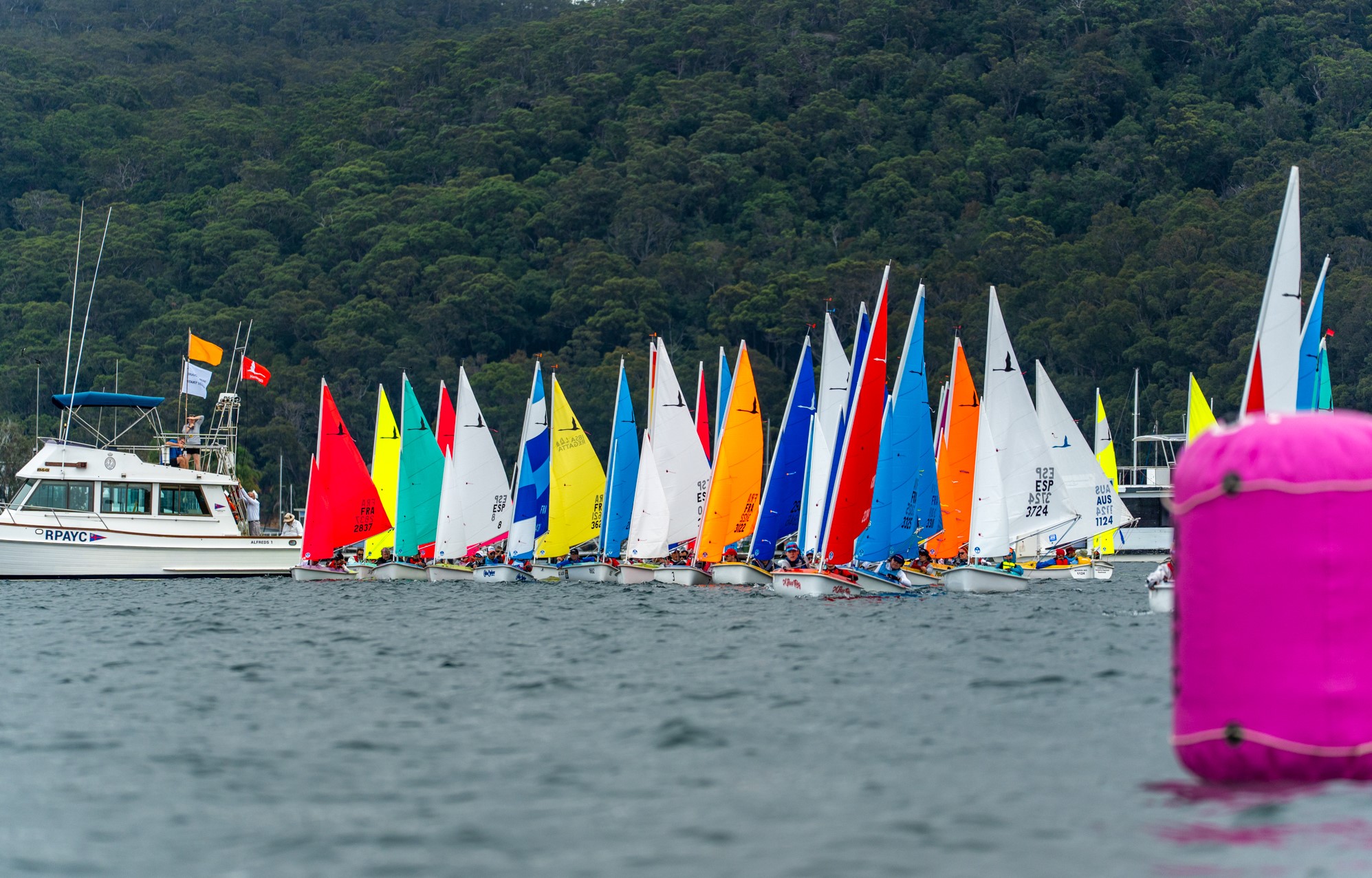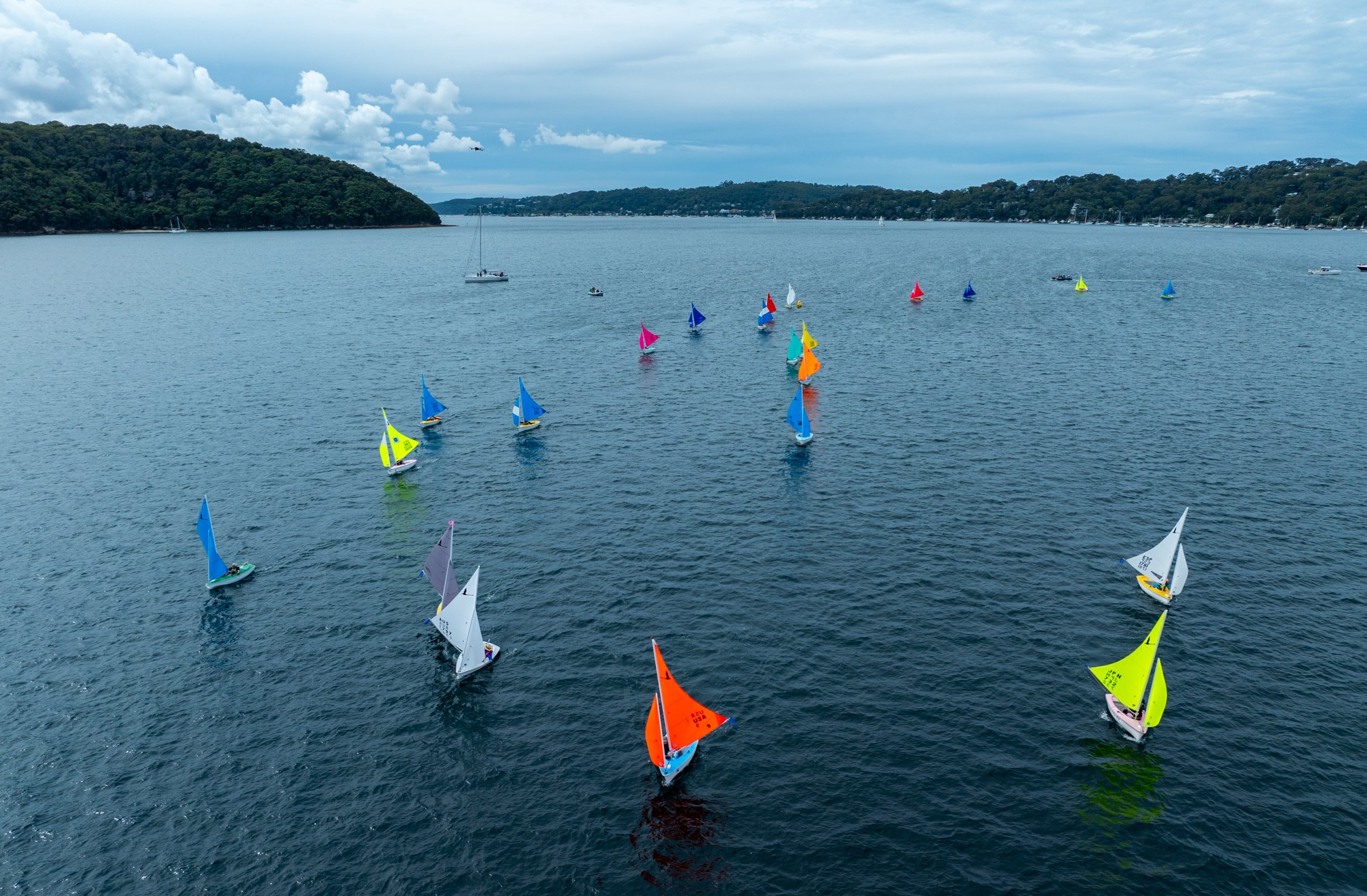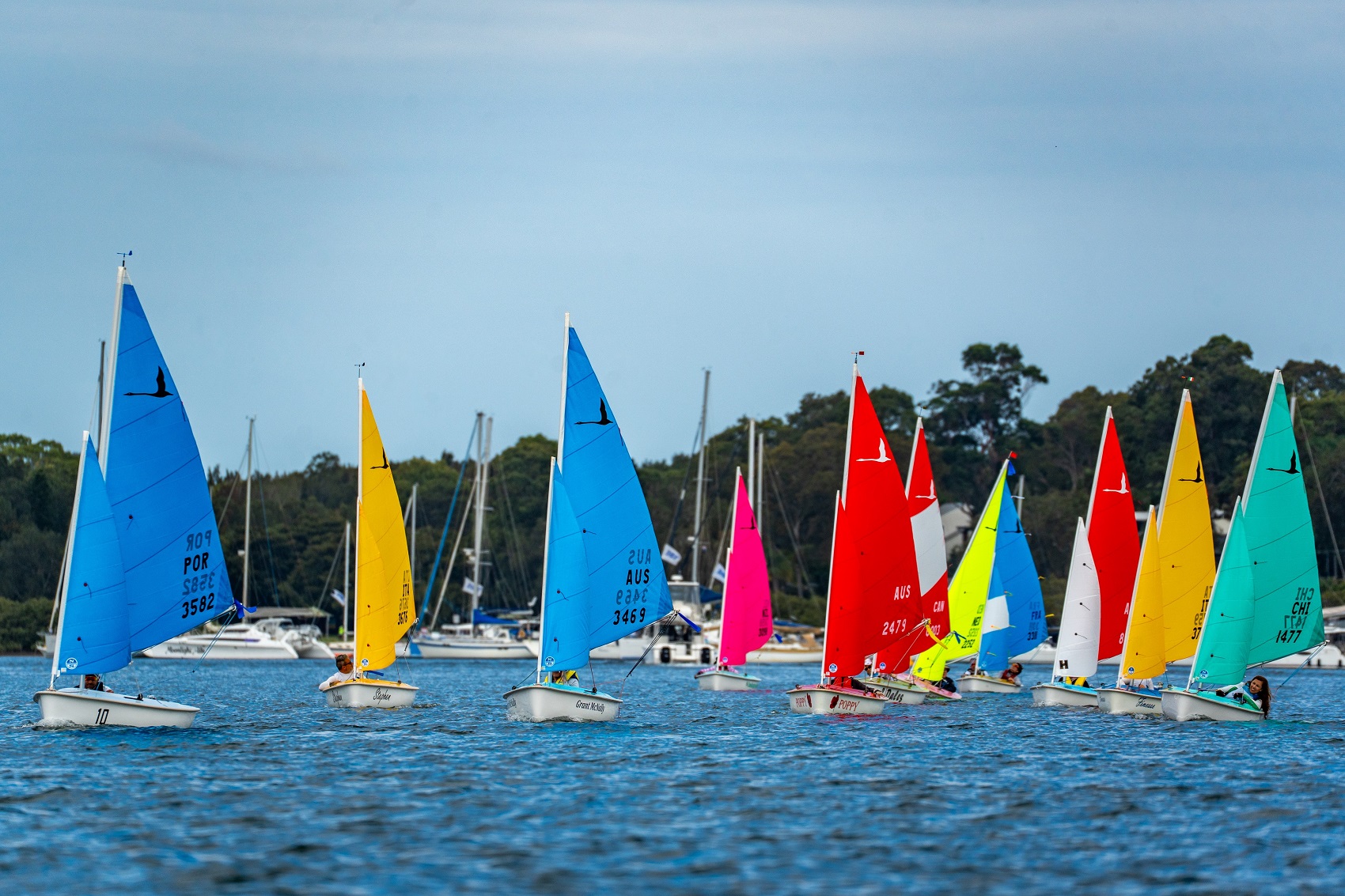 Pittwater alive with colour of Hansa 303s.Photo: Alex Dare, Down Under Sail, Hansa Worlds