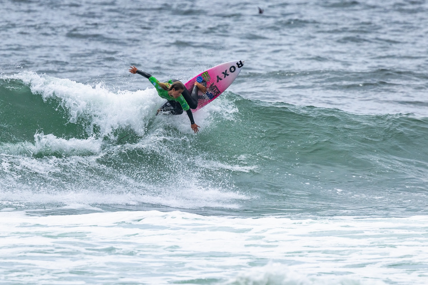 One surfer who locked completely into rhythm with the ocean on a tricky day was Leia Millar (NZL), who collected a 13.64 heat total, the highest of the day for U/18 girls. Millar picked up her counting scores courtesy of two inside double-up rights that stood up perfectly for the 18-year-old to draw tight critical arcs. Appearing in her third and final WJSC, and for the first time in U/18 girls, Millar has already improved on her best ever finish.