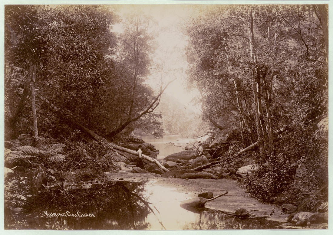 They fought through waves of ferns and wild palms and wild apple Scrub. They crept through black aisles of sheoaks, turpentines, and Ironbark, gloomy as a pillared cathedral. Then across the gully rattled a shot. "It's all right, it's only a pigeon, blokes," echoed a far-away voice from the green ocean of leaves.