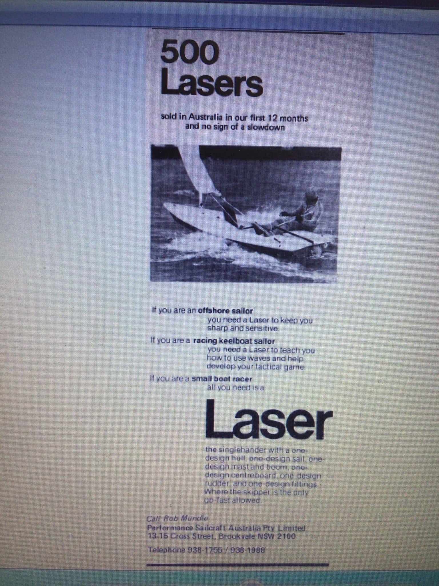 WHOA! I have just been reminded it’s 50 years since I introduced the Laser class to Australia. The first boats came in large cardboard boxes in a shipping container from Montreal to Sydney. Those boats sold for $695!!!. I set up a factory in Brookvale and at the height of production we were building 15 boats a week! Great memories - super regattas - fun times. - Rob Mundle