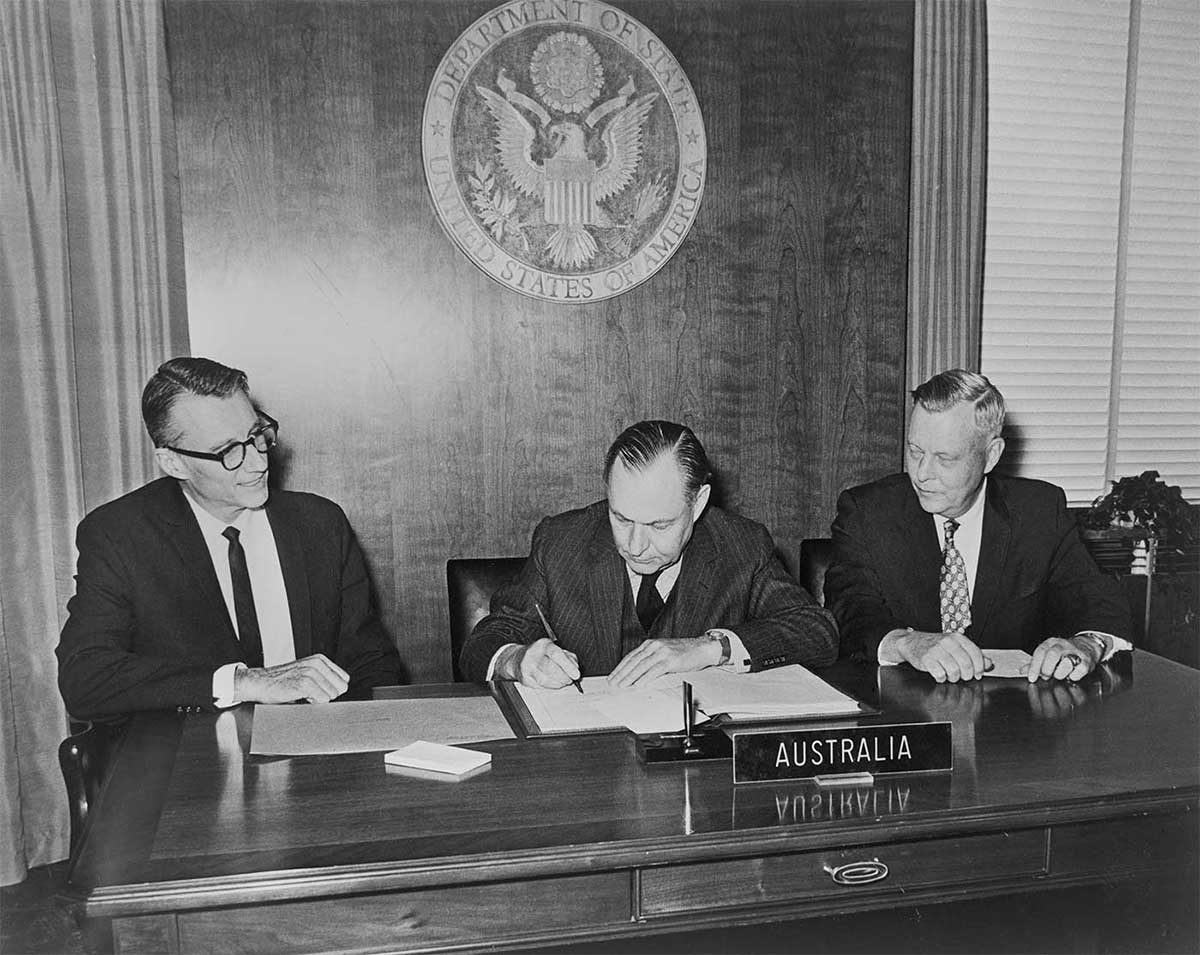 Australia signs the Nuclear Non-Proliferation Treaty, 27 February 1970. Photo: National Archives of Australia