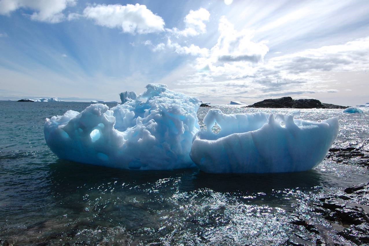 Floating mountains of blue ice shaded with white; white ice shaded with blue. Confections.