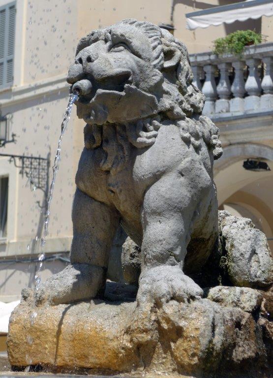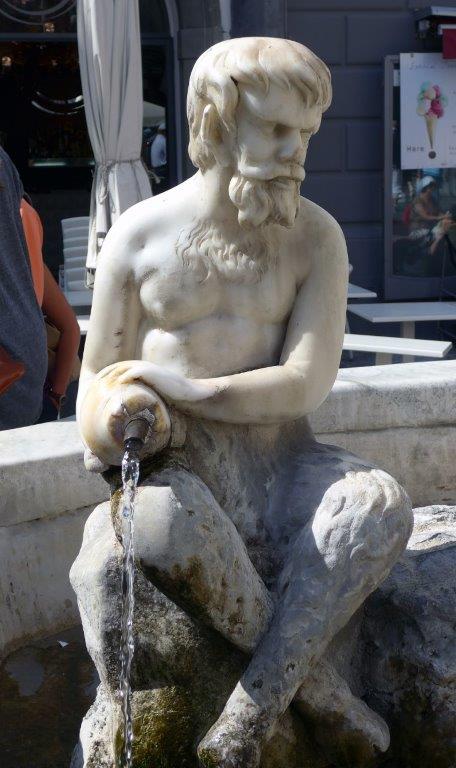 Figure, with water spout, sitting in a pond. Amalfi Coast, Italy