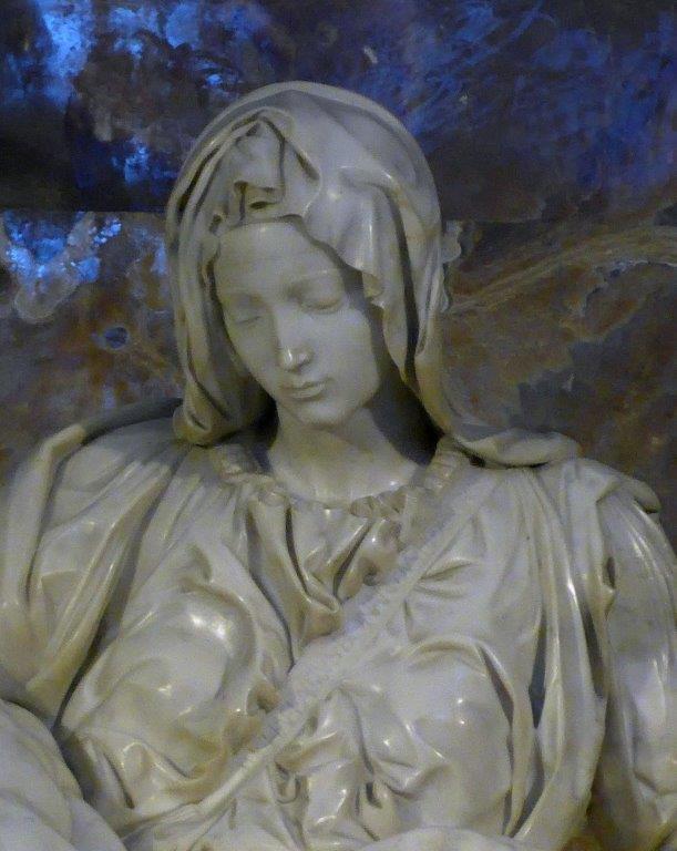 The Virgin Mary. Detail from Michelangelo's Pieta in the Basilica of St. Peter's. Rome. Italy.