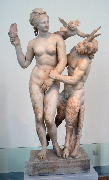 Nymph and Satyr. Archaelogical Museum. Athens, Greece..