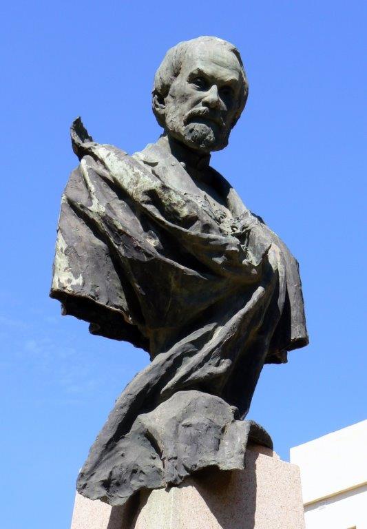 One of an avenue of nine monuments commemorating prominent Maltese personalities, in a park. Valletta, Malta.