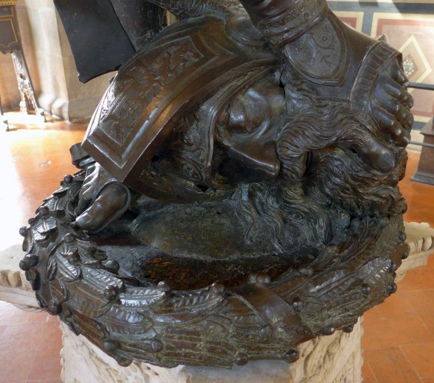 Goliath's head under the feet of David. Now in Museo Nazionale del Bargello. Florence, Italy