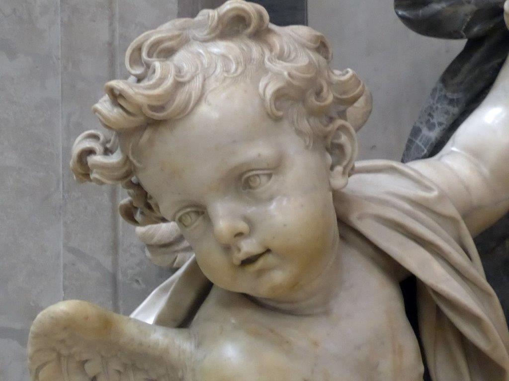 Head of a child. Part of a group near the entrance to the Basilica of St. Peter's. Rome, Italy.