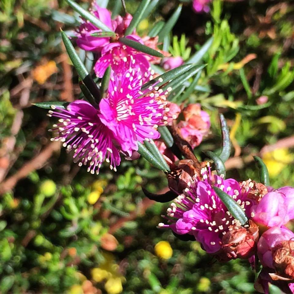 What you see here reminds you of bush-flowers found on the eastern seaboard but with slight variations in colour and size. Some of these photographed this Spring run below.