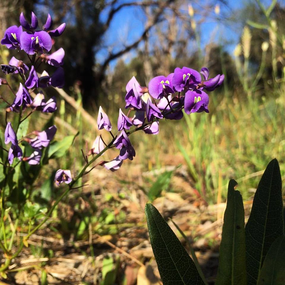 Native Wisteria (Hardenbergia comptoniana) - One of the climbers native to Kings Park. It has attractive Wisteria-like clusters of deep purple pea flowers in spring. Look for its two green eyes!