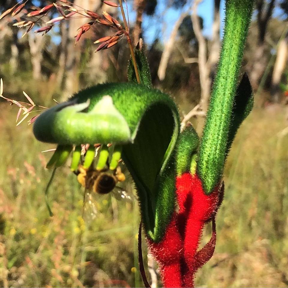 Mangles Kangaroo Paw (Anigozanthos manglesii) - The State Floral Emblem is one of the most spectacular plants with its vivid red and green coloured flowers. Honeyeaters are often seen collecting nectar and so pollinating the flowers