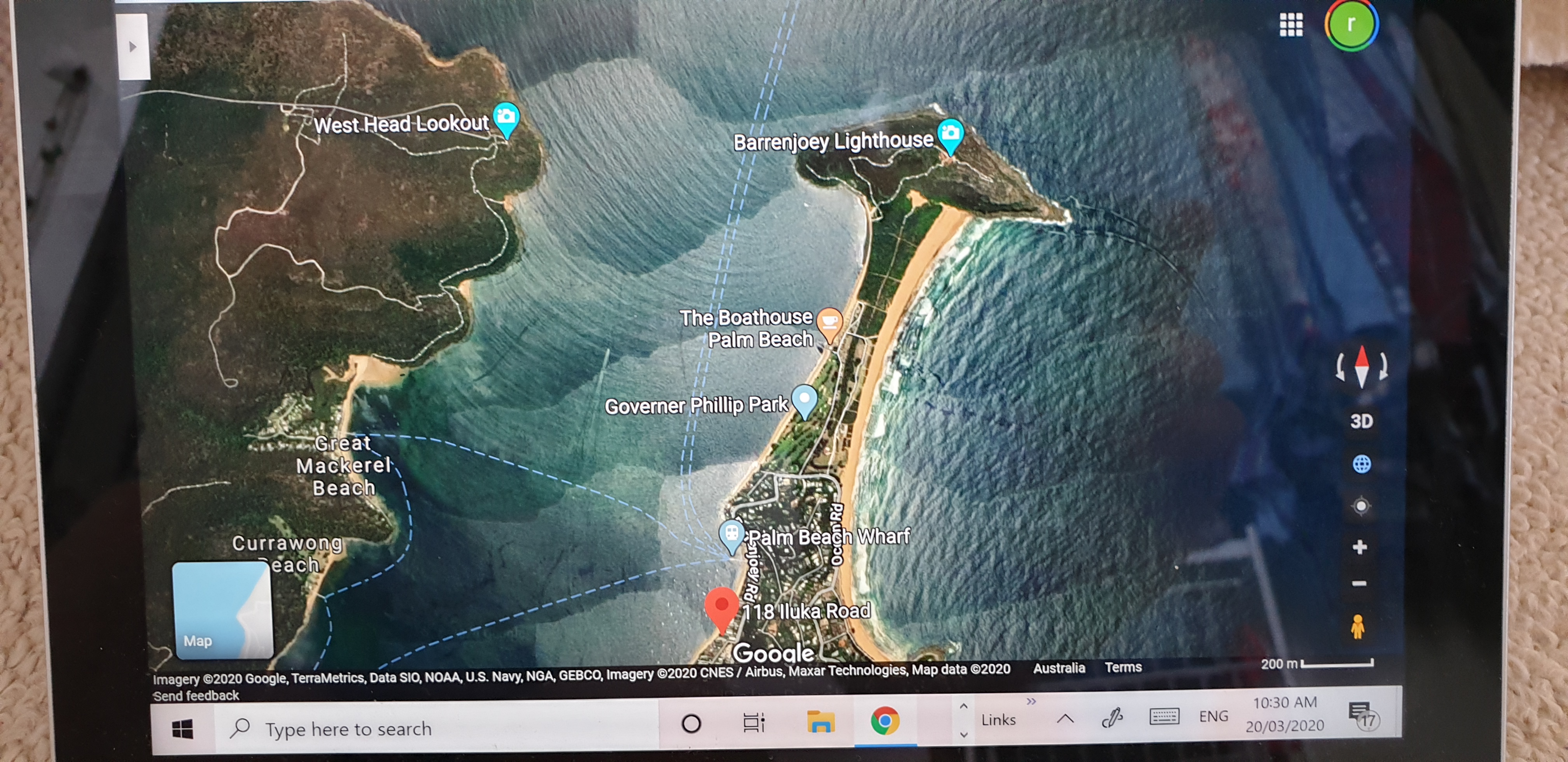 Easterly waves outside can refract right round and come onto shore at Snapperman as WNW waves as shown in Google Maps satellite pic.