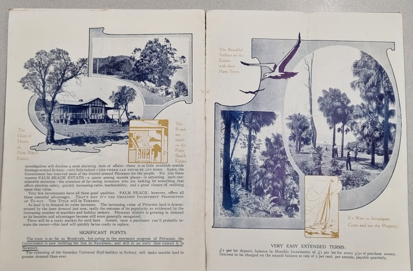 Barrenjoey - Palm Beach Estate - Pittwater - Barranjoey Rd 1912 - part of brochure. Item: c052700024, courtesy State Library of NSW