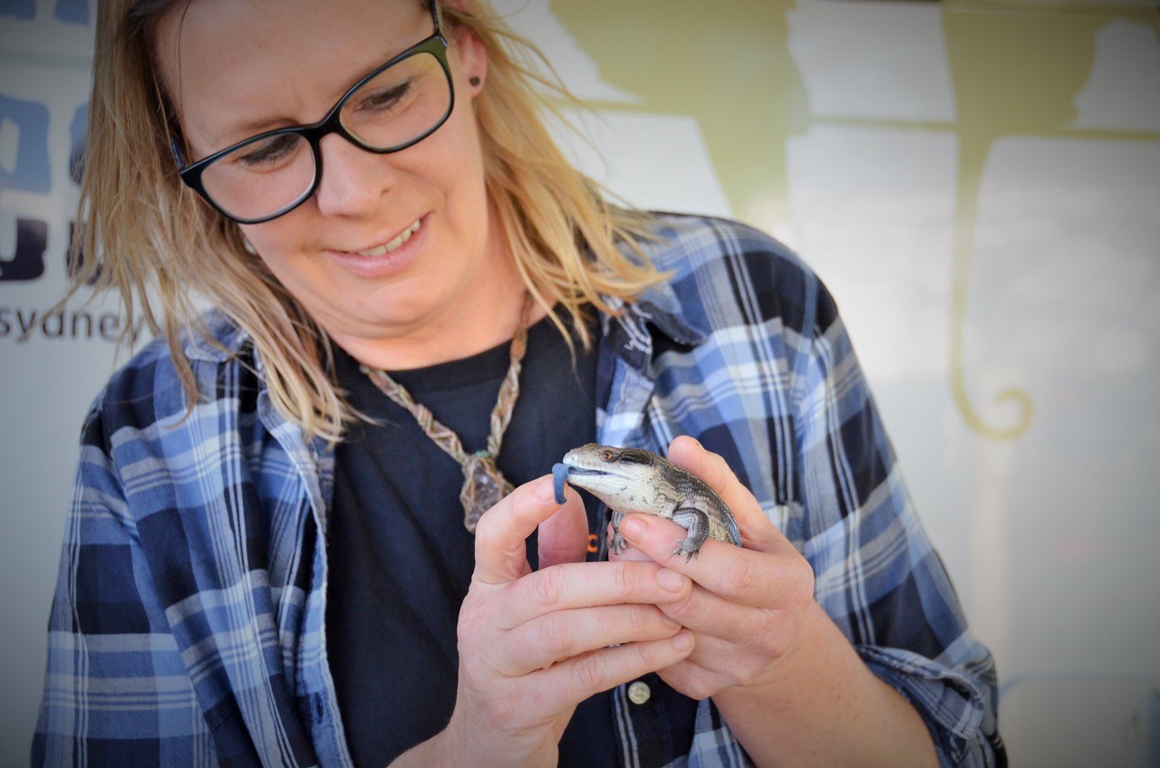 Georgie with a blue tongue lizard still in her care - photo by Margaret Woods
