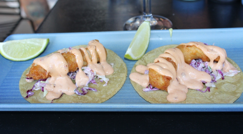 We then enjoyed some Tacos – the Pork belly was served with pickled radish, avocado cream, smoked jalapeno salsa. ( 2 pc: g/f d/f $12) – morish crispy skin and melt in the mouth meat, and our love of fish chose another Taco offering in the Beer Battered Fish served with red cabbage slaw, chipotle aioli. ( 2 pc: $12 ) – more succulent really fresh fish fillets, and that chipotle aioli; to live for!