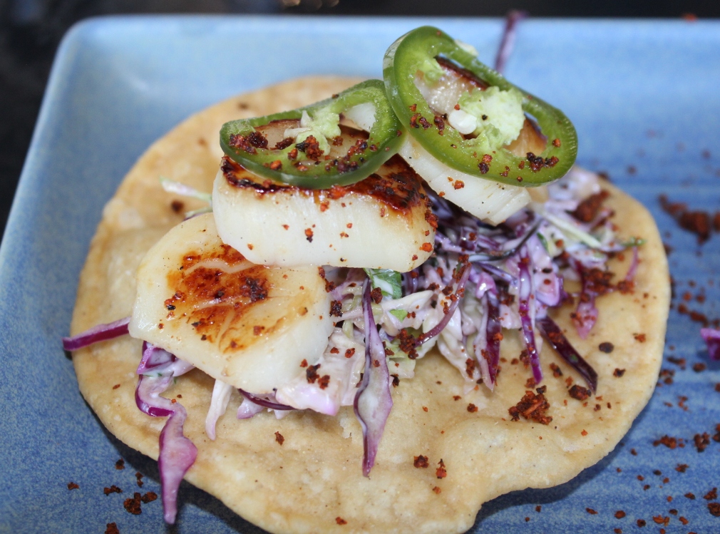After a small break a selection of another Tostada, this time the Pan Fried Scallop served with red cabbage slaw, sliced jalapeno, showed the chef knows how to cook plump moist scallops so they retain the sweetness.