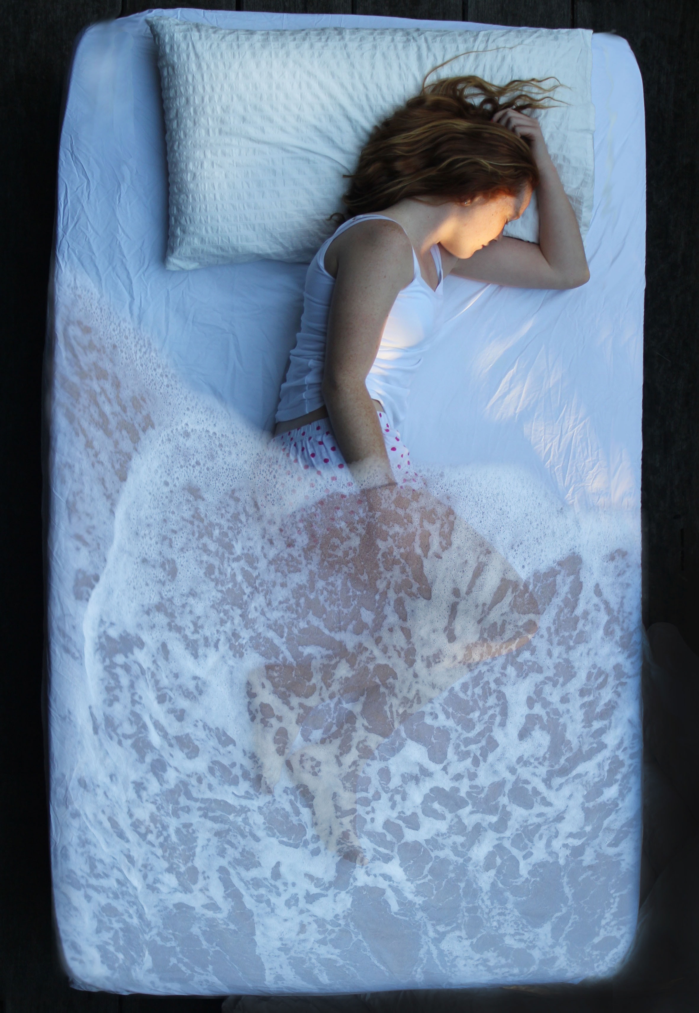 It’s all about the inter-connectedness of humans with their environment, the coastal environment of Australia really. We’re all enveloped in the tides, the tide washes over the sleeping girl,the tides are being governed by the cycles of the moon, and it is said that a woman’s cycle is governed by the moon as well, or at least it used to be when we were more in touch with our environment. It's nature's rhythm.