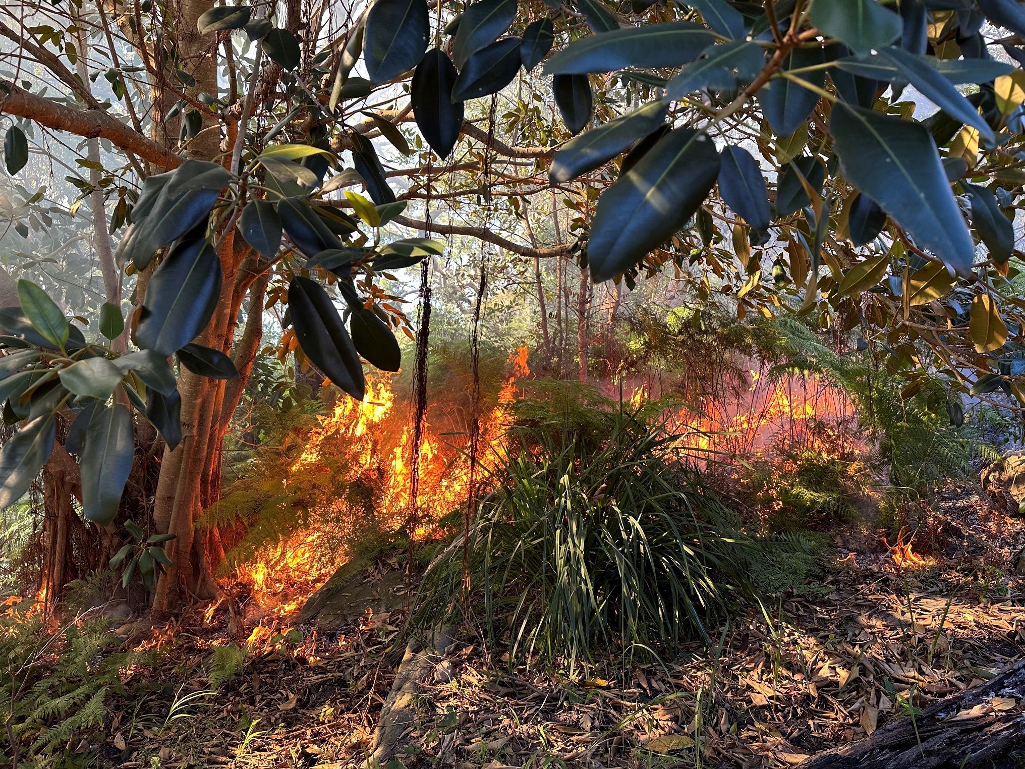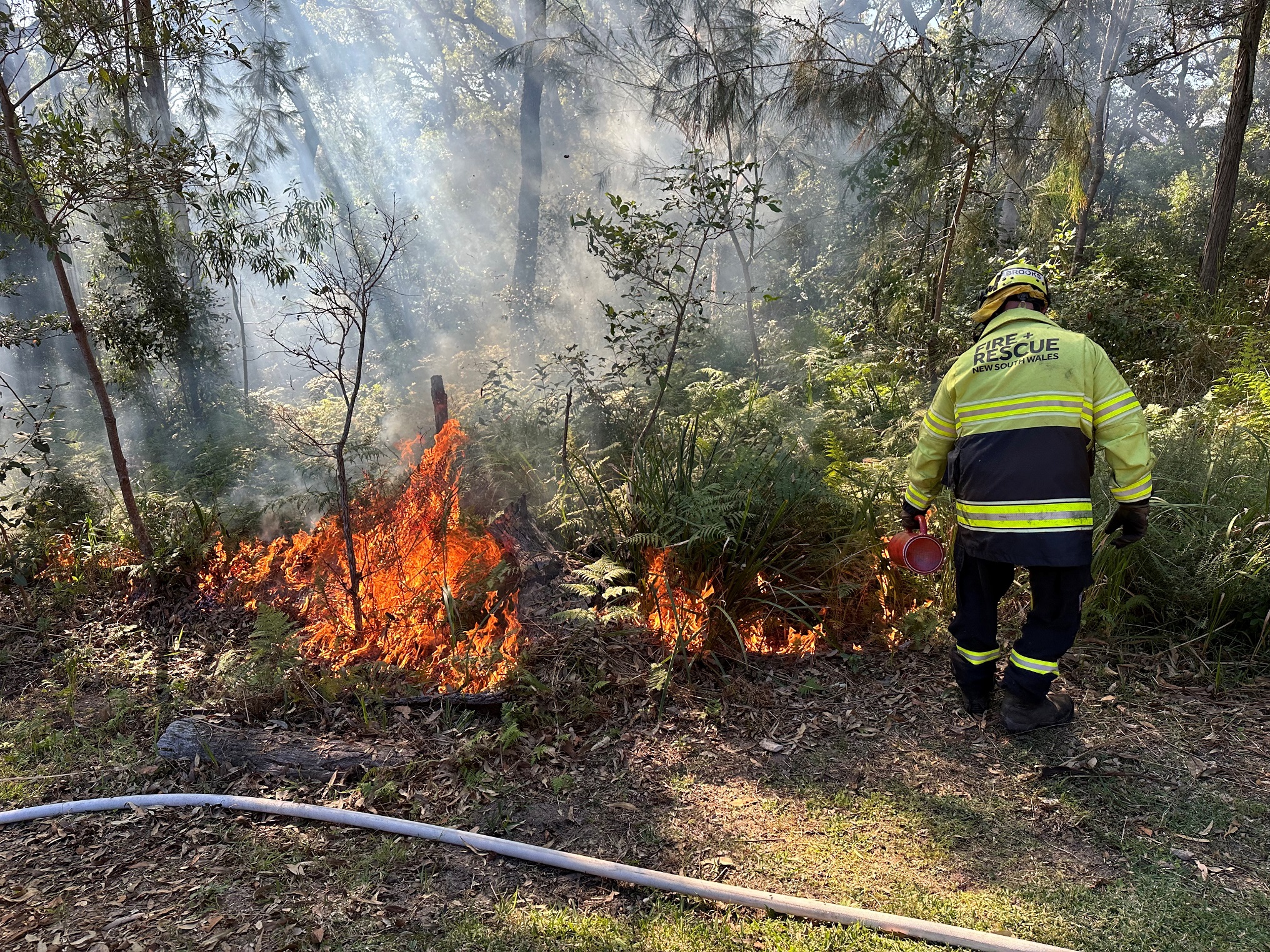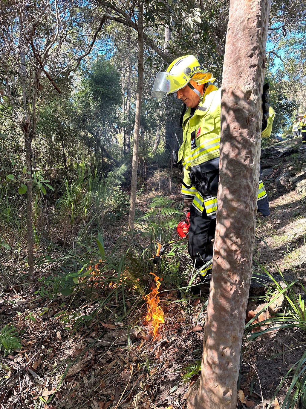 It was precision burning at Angophora Reserve on Wednesday when Fire and Rescue NSW carried out a Hazard Reduction Burn. With hose lines laid out along the main track and behind residents' homes, the operation involved 13 trucks and tankers as well as 60 firefighters from as far afield as Cabramatta, Guildford and Hornsby. Uneventful at all times, flames were kept low and when they did shoot up the trunk of an old Angophora, a firie would hose them down.