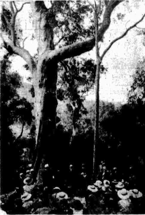 On the sea side the stunted shrubs and flowers bend ever before the salt breezes, and cling slopingly to the cliffs for support; the summer cottages which face the ocean are built on stout stone foundations well Into the rocks, with never a branch or twig to shelter them from the buffeting breezes. Here, our cottage stands lightly upon piers, and nestles amongst the tall gums and she-oaks which spread a grateful shade on hot days and form a frame of magic tracery for the still water below. Bananas grow amongst the grey rocks, with flannel flowers at their feet; hibiscus and roses and wattles flourish side by side, and the heavy scent of orange-blossom Is lightened by the cool clean tang of the prolanthera.