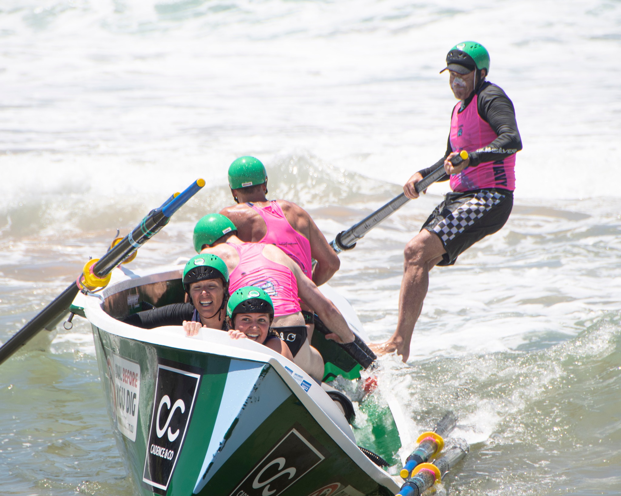 The event differs from the traditional Surf Boat racing format whereby the crews race out and around a turning can and return to the beach with a distance of just 400m – half the distance of the traditional course – and takes the top crews around four minutes to complete.