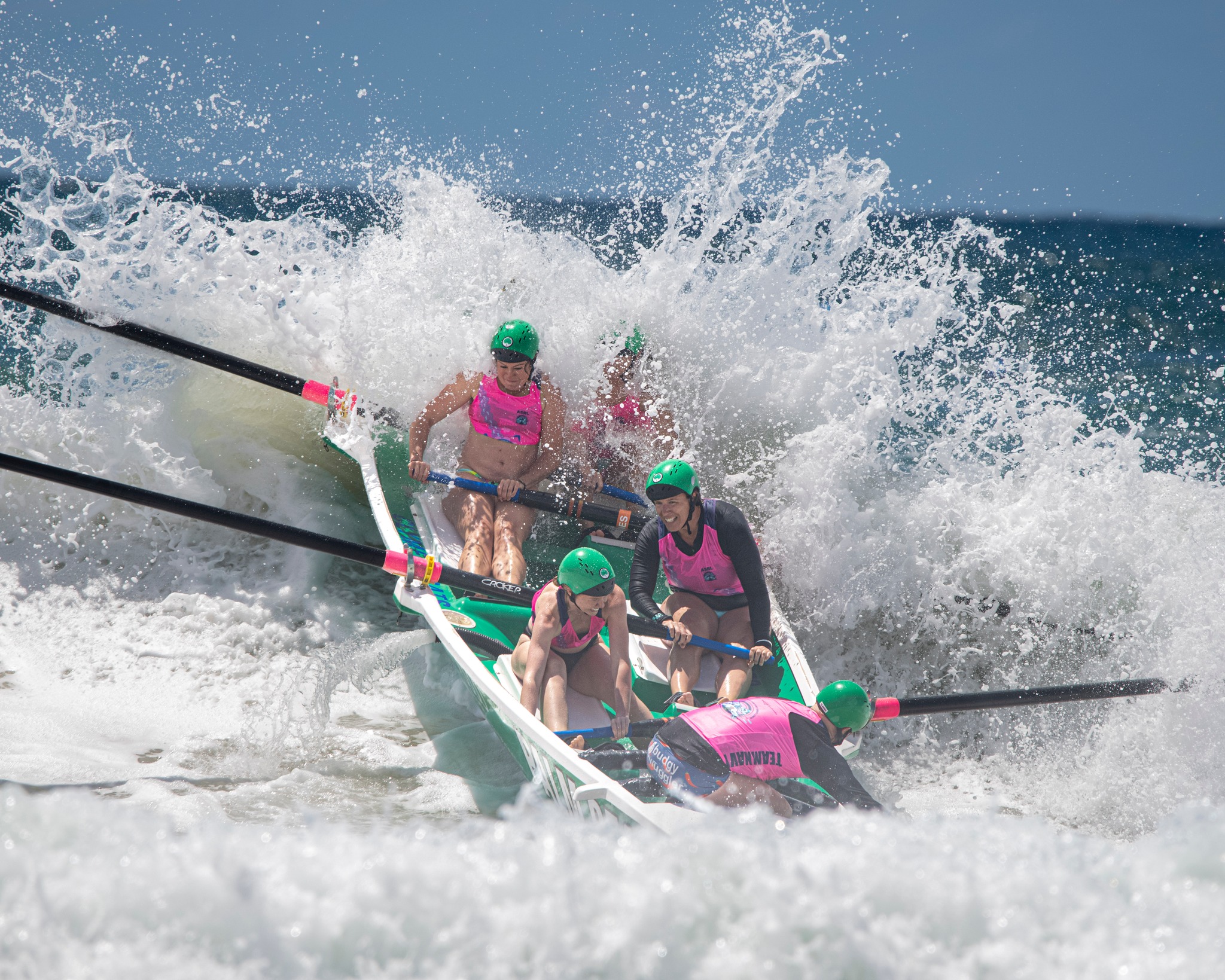 North Steyne Reserve Womens crew 'Alive' at the 2022 Newport surf boat carnival