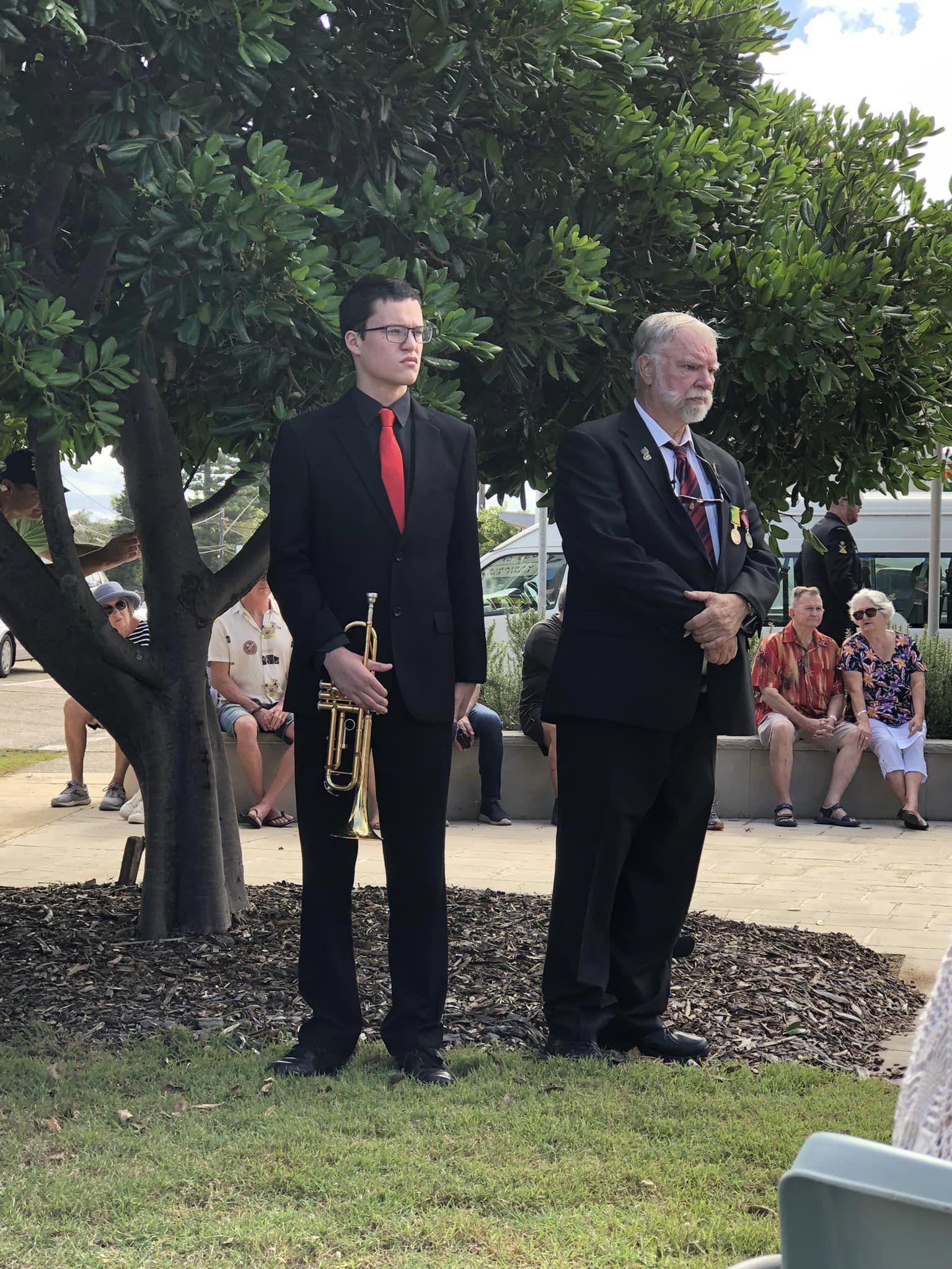 Ethan did a great job playing the trumpet-bugle for the “The Last Post”. 1 minute silence. “Reveille”. John West standing next to him.