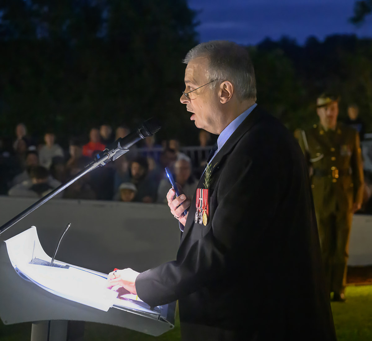 The Australian Defence Force of today, the Navy, Army, and Air Force, perform abnormal things on a daily basis. The Anzacs did this on 25th April 1915. We can’t thank them or those who have followed at sea, in the air or on land enough. Thank you so very, very much for turning up this morning. Every year it is an amazing sight to behold, looking out at all of you in the early dawn. Veterans and those serving in your Navy, Army and Air Force today need some cheer right now. Things are tough, but overwhelmingly the people are as good as, or even better than ever. I assure you they are very appreciative of the support that you give to them and their families, of which attending this service this morning, is a very outward and visible sign.