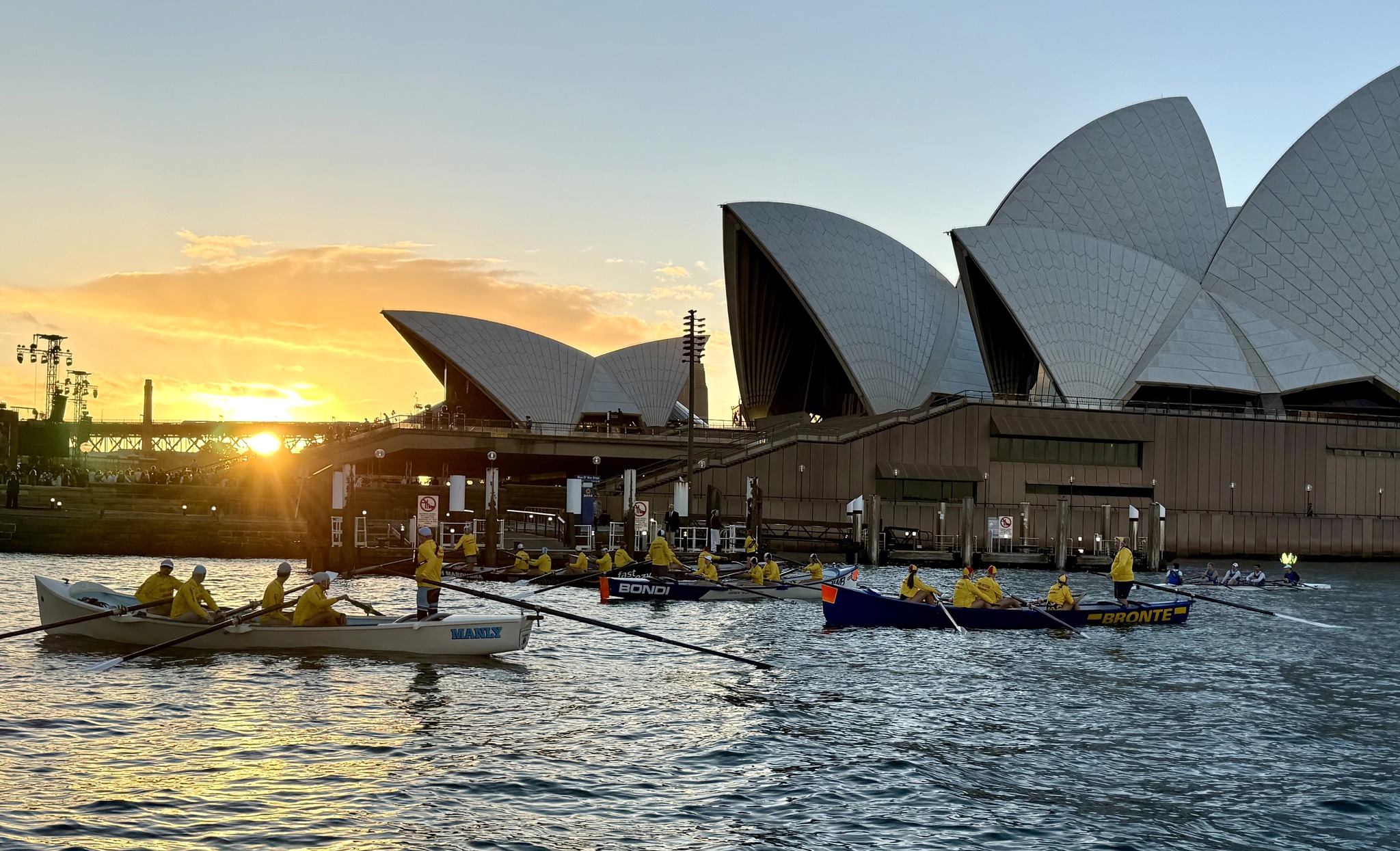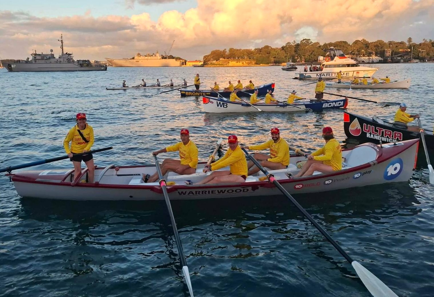 Members from Warriewood SLSC Surf Boat Division took part in an Anzac Eve Sunset Tribute on Sydney Harbour.