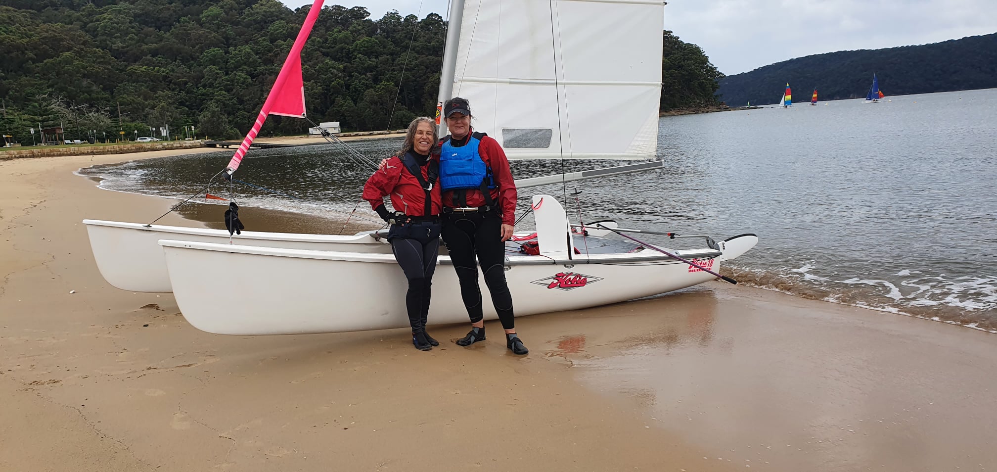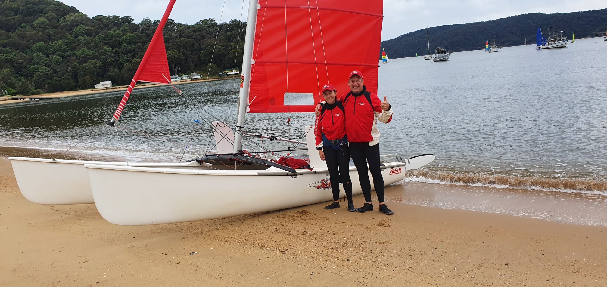 Great turnout on Saturday April 30 for the fish & chip run from Sand Point to Patonga to end our PBSC sailing season. Thanks to John Forbes for letting some sailors sail a few of his Hobie 18’s to Patonga. Also thanks to Dave Fisher on the rescue boat looking after all sailors on water. The first boat to hit the beach at Patonga was Tracy and Linda on H18, followed by Forbes family on H18 and Ian and his wife also on H18.