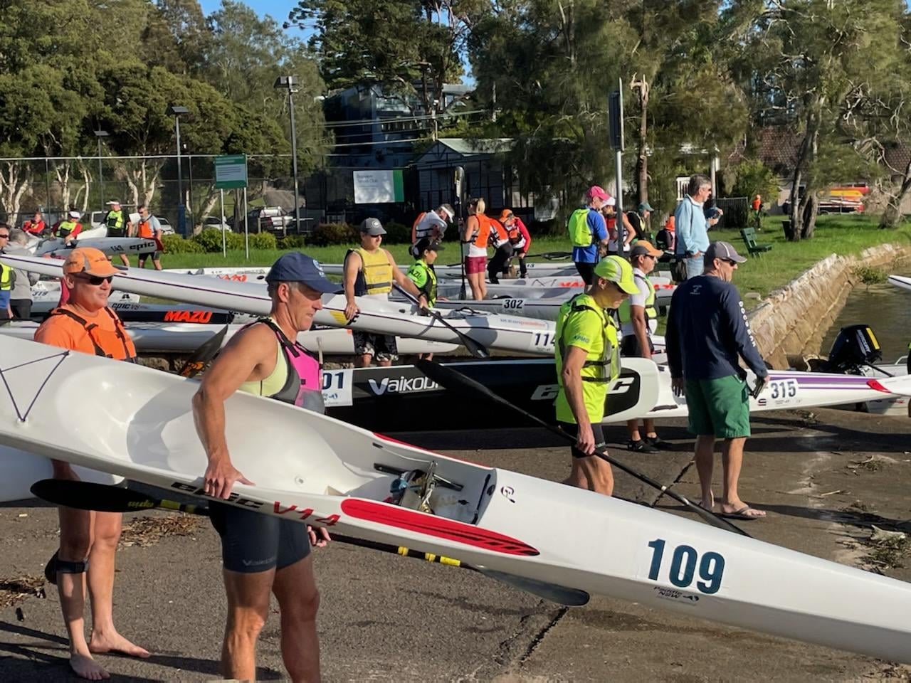 The start list showed a vast array of clubs participating; Makai, Shark Island, Wollongong, Newy, Penrith, Cronulla Sutherland, Brisbane Waters, Lane Cove, Burley Griffin, AOCRA, Illawarra, Sydney Harbour Surf Club, Learn to Paddle, and of course MWKC.