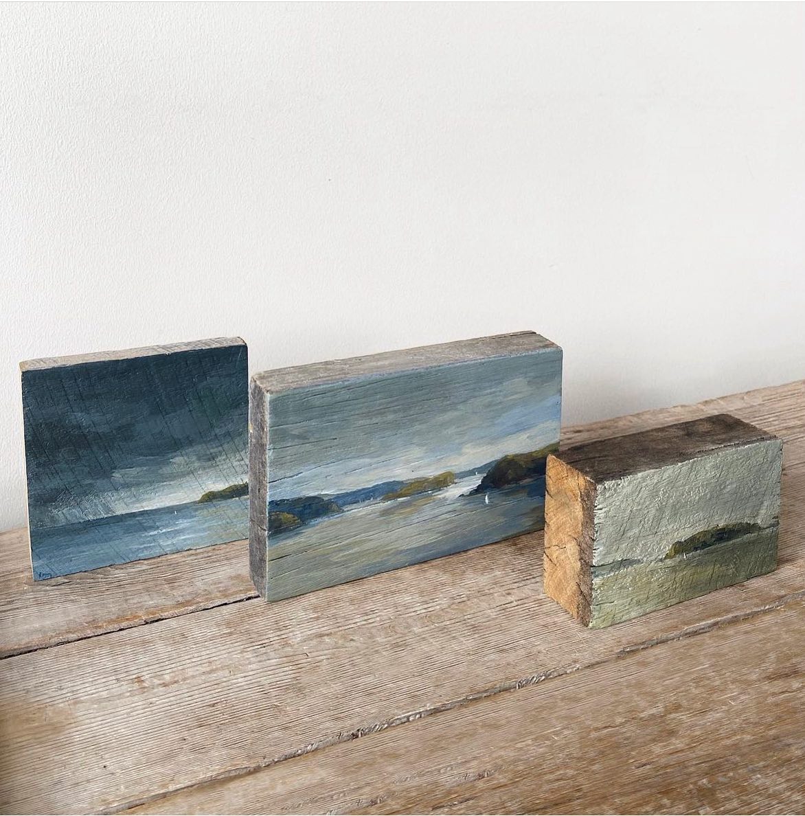 I have spent many happy days in and around beautiful Pittwater. Swimming in her, boating on her, camping by her, renovating a small shack on the edge of her and painting her! Always changing, yet at the same time always familiar. Pittwater is my inspiration, my home. It’s where I love to live and where I love to capture the feeling of the landscape, the ever changing light and movement in the sea and sky, through my paintings on salvaged wood.