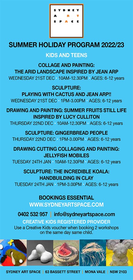 Sydney Art Space At Mona Vale: End Of Year Exhibition + School Holdays Workshops 2022-2023
