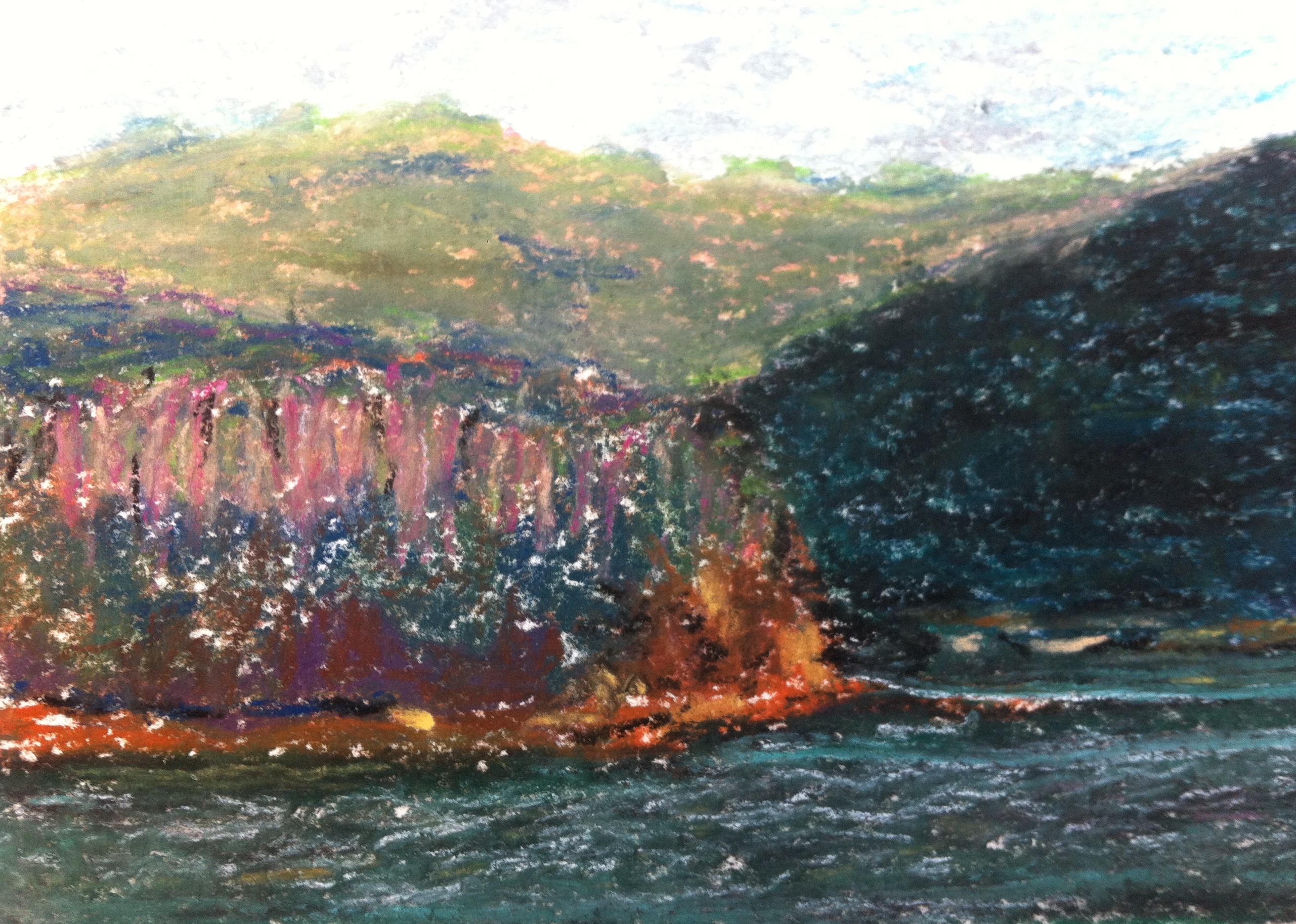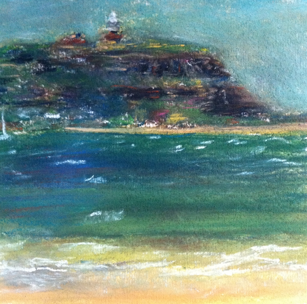 Barrenjoey Headland from Mackerel North Wind - pastel on paper, 2018