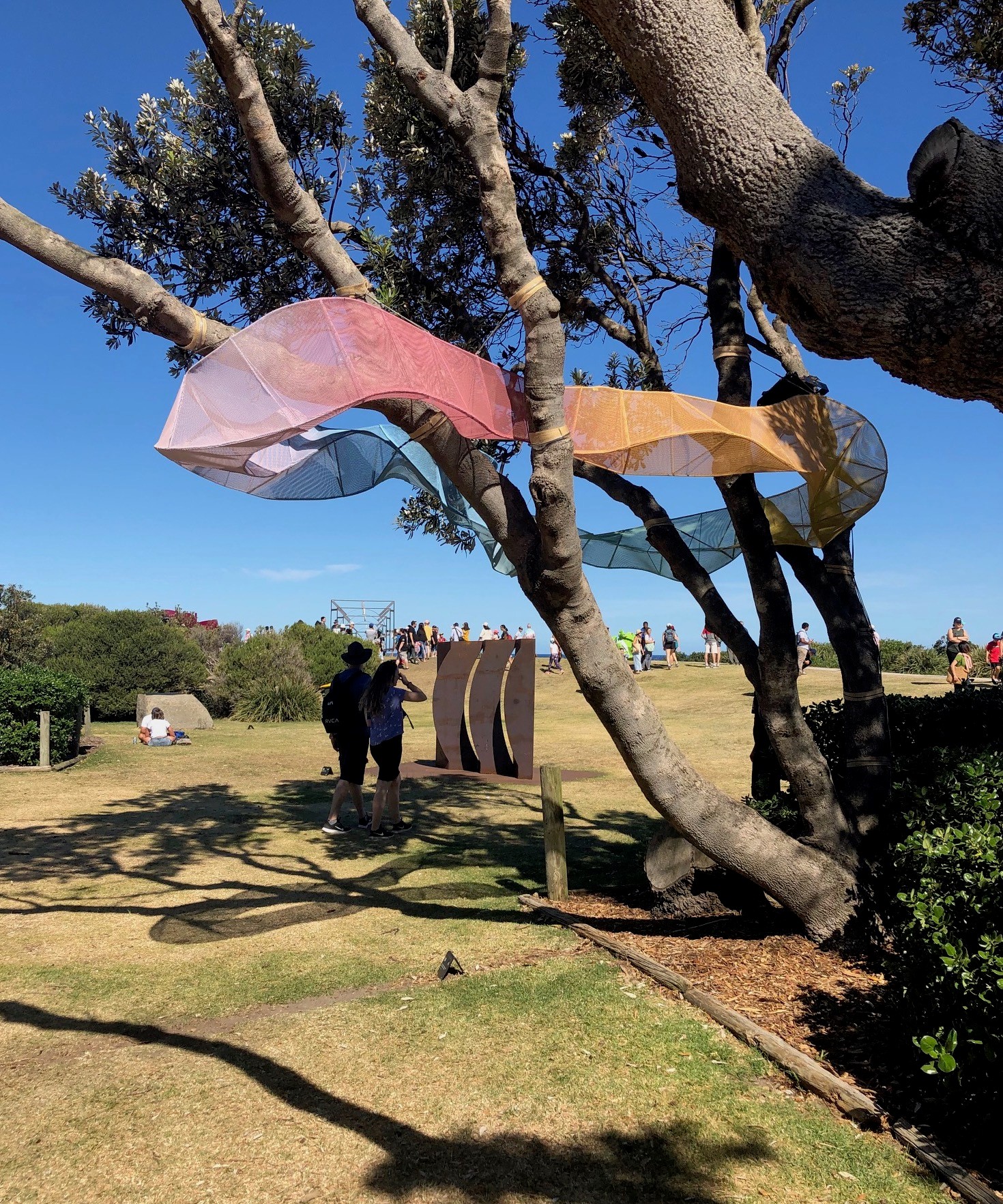 The work at Bondi was wrapping around and through these acacia trees. I thought ‘there’s a series coming and I think it will all be about some sort of tree conversation’ – and is suspect it will largely be trees that are living on Scotland Island.